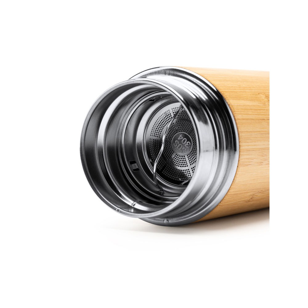 • Термос CEDRO из нержавеющей стали 304 и бамбука с заварочным устройством, 480 мл, натуральный