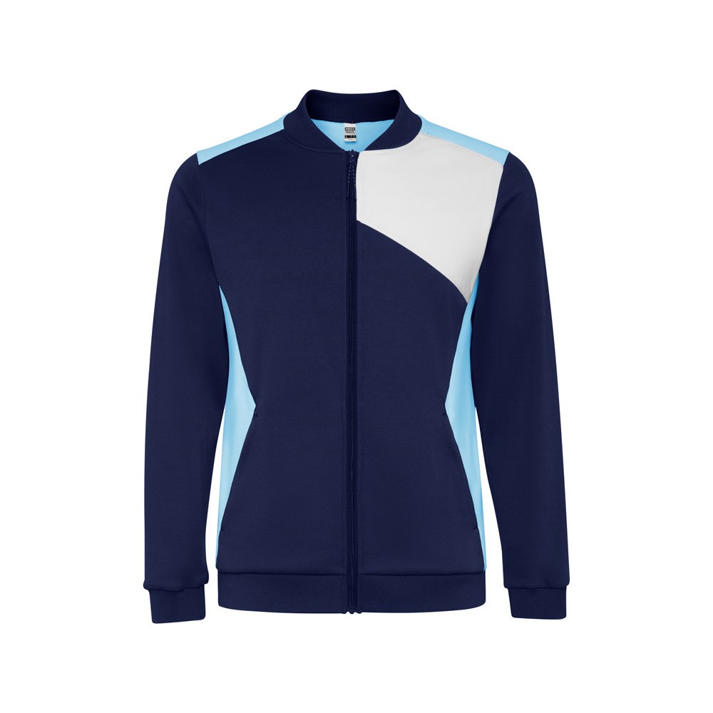 Спортивная куртка на молнии. Боковые карманы закрываются на молнию. Воротник, манжеты и низ из риба 1х1. Ассиметричная левая сторона спроектирована специально для вышивки. Может быть с комбинирована с брюками Rhodes.