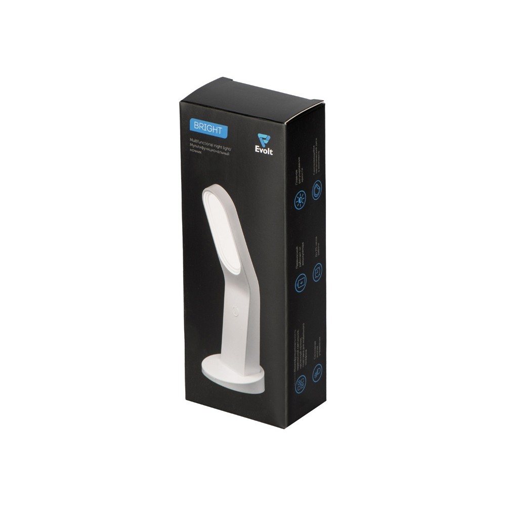 Мультифункциональный ночник «Bright» от Evolt можно использовать как настольную лампу на подставке, настенный светильник или даже в качестве держателя для мобильного телефона.