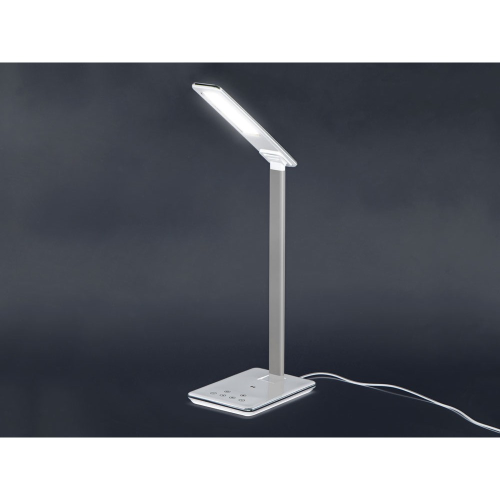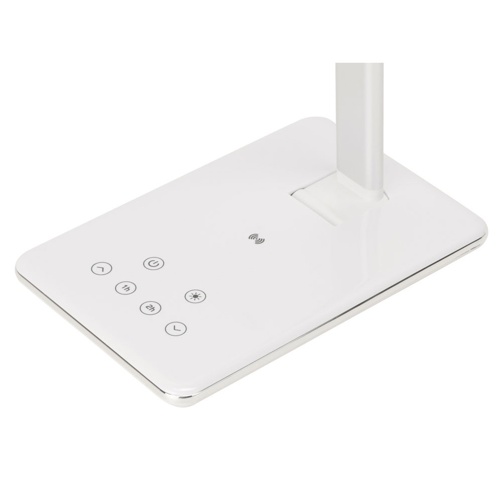 «Умная» функциональная настольная лампа с 3 режимами освещения: теплый желтый свет, нейтральный свет и холодный свет. Равномерно мягкий свет приятен и безопасен для глаз (отсутствует мерцание). На панели основания лампы можно также регулировать яркость и ставить таймер отключения (1 или 2 часа). В лампе предусмотрена беспроводная зарядка Qi-совместимы устройств, чтобы зарядить смартфон – просто разместите его в центре основания, и зарядка автоматически начнется. Выходной порт USB для проводной зарядки устройств. Благодаря продуманной конструкции лампа может принимать практически любые положения.
