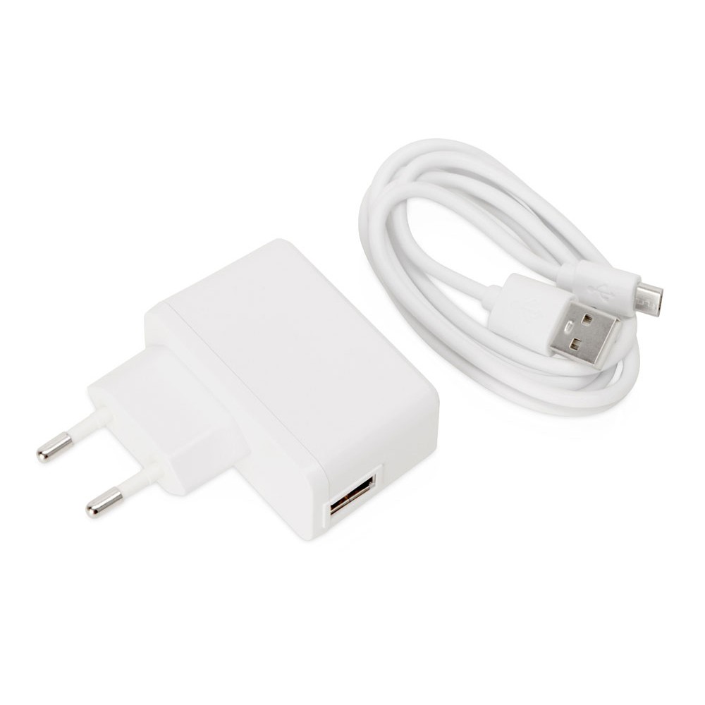 В комплекте адаптер питания 220 В, зарядный кабель и инструкция.
