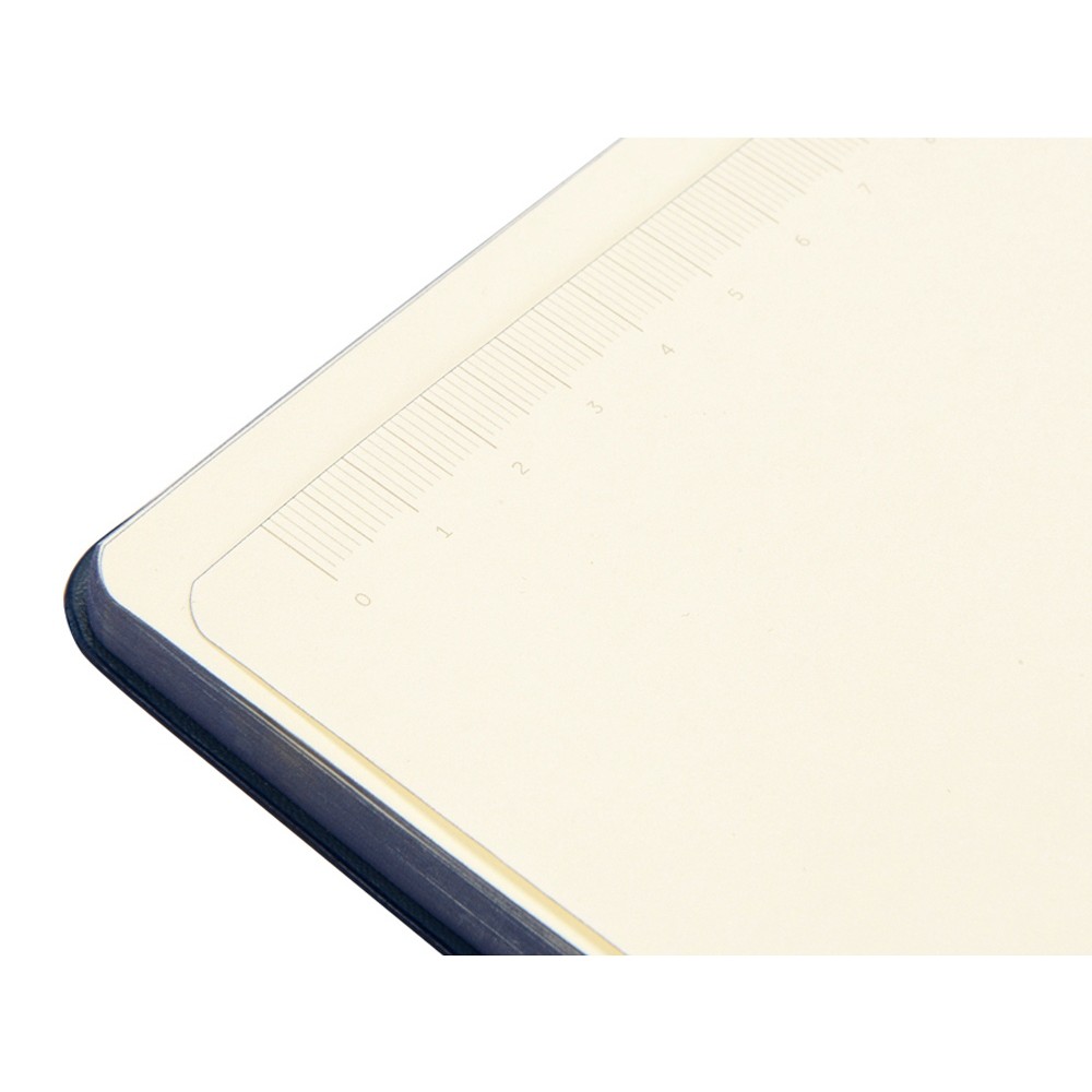 В блокноте 160 линованных перфорированных страниц кремового цвета с плотностью 80 г/м2. Последние 8 страниц представлены следующим образом: 2 страницы в линейку, в клетку, в точку, пустые и последняя страница содержит линейку для измерений на 18 см.