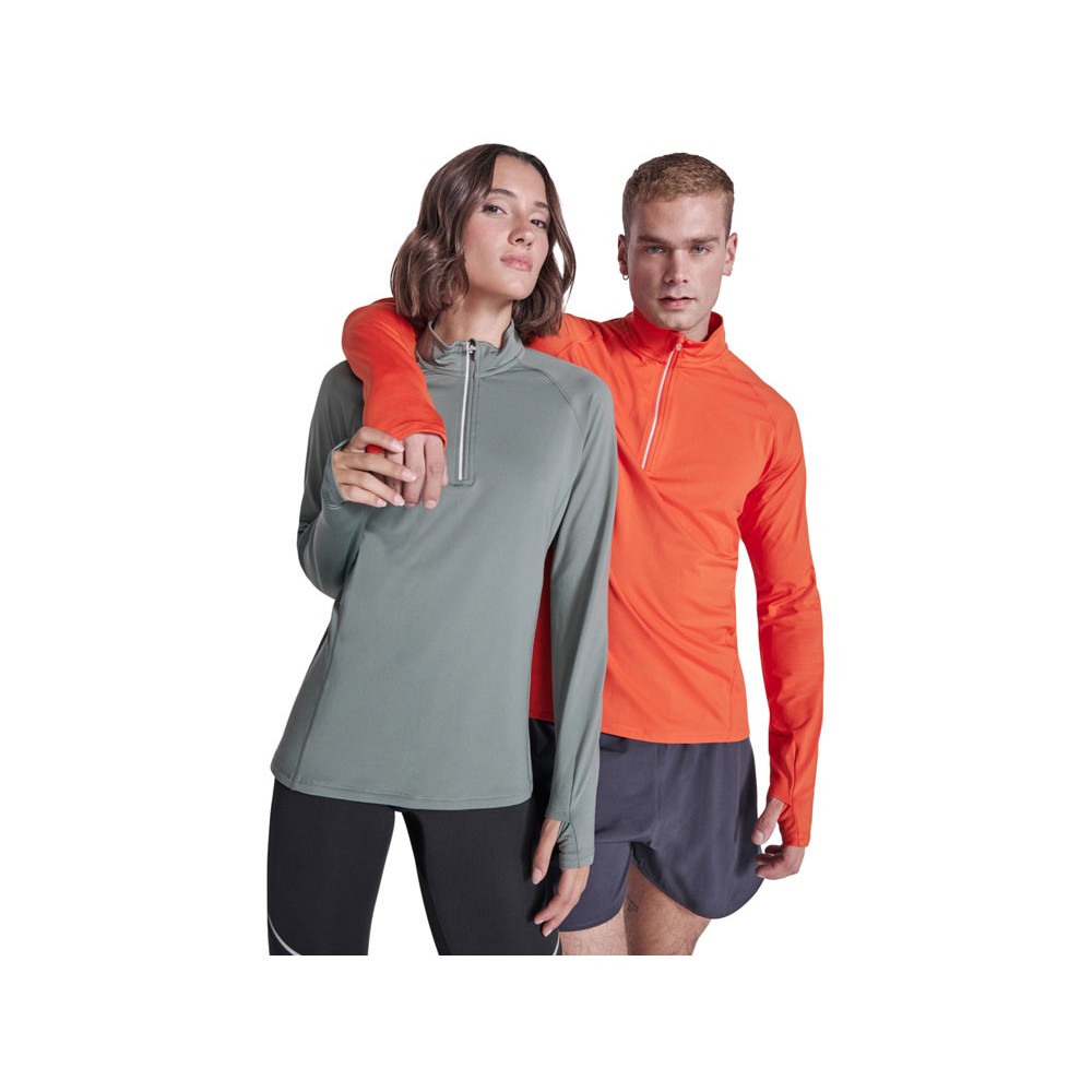Лонгслив с рукавом реглан из технологического плотна, ворот на молнии со светоотражающей деталью. Усиленные швы. Манжеты с отверстием для большого пальца. Светоотражающая деталь на спинке. Низ спинки длиннее переда. Изнанка с теплым начесом.