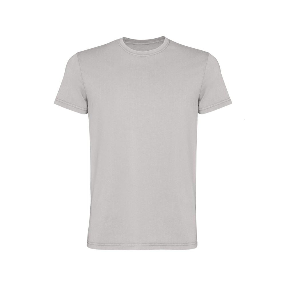 Мужская футболка с коротким рукавом из 100% хлопка с аксидной стиркой. Круглый вырез горловины из риба 1х1. Отстрочка в тон по горловине.