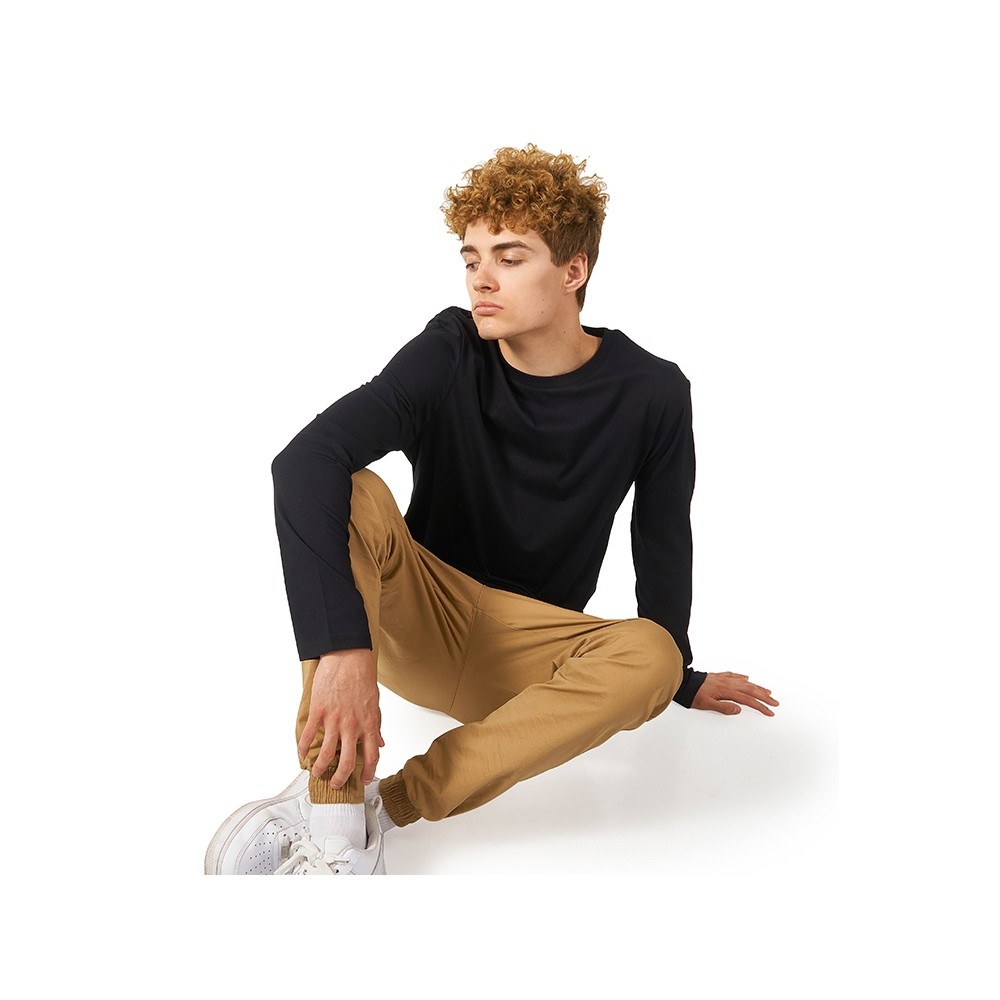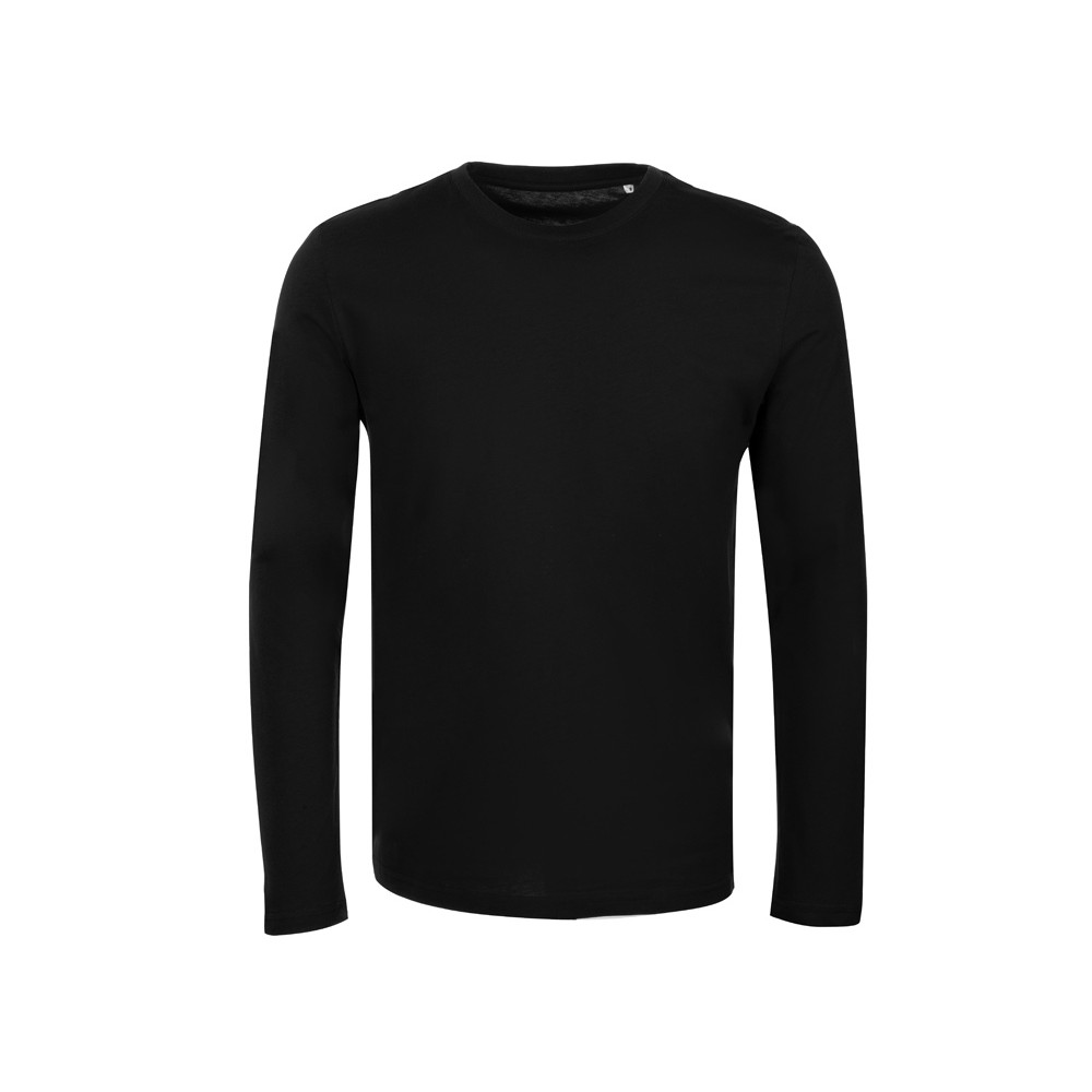 Футболка с длинным рукавом комфортной посадки с боковыми швами. Горловина обработана рибом 1х1 и тесьмой по спинке. Футболка выполнена из хлопкового джерси.