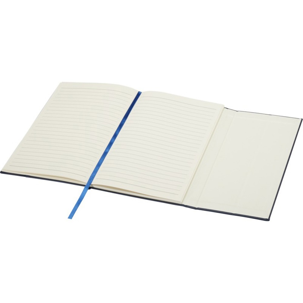 Блокнот Alejandra формата A5 в твердой обложке изготовлен из переработанного полимерного и PET-пластика с 80 линованными листами кремовой бумаги плотностью 70 г/м², а также оснащен ленточкой-закладкой и карманом-гармошкой.