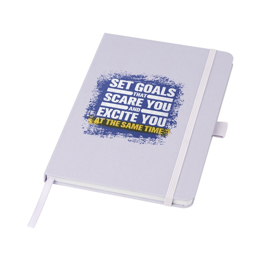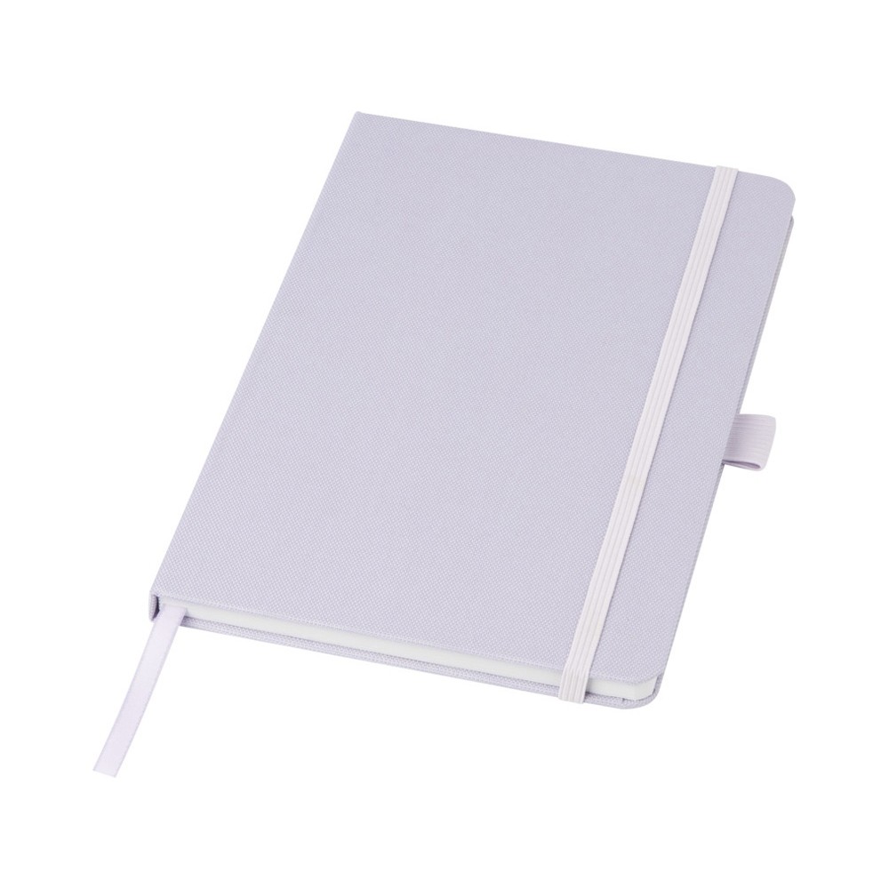 Блокнот формата А5 с обложкой из переработанного ПЭТ. Содержит 80 листов в линию плотностью 70 г/м², изготовленных из переработанной бумаги, с петлей для ручки и лентой-закладкой. Может быть дополнен шариковой ручкой Honua 107757 из переработанного ПЭТ. Переработанный PET пластик. FSC Recycled 100% P7 CU-COC-877277.