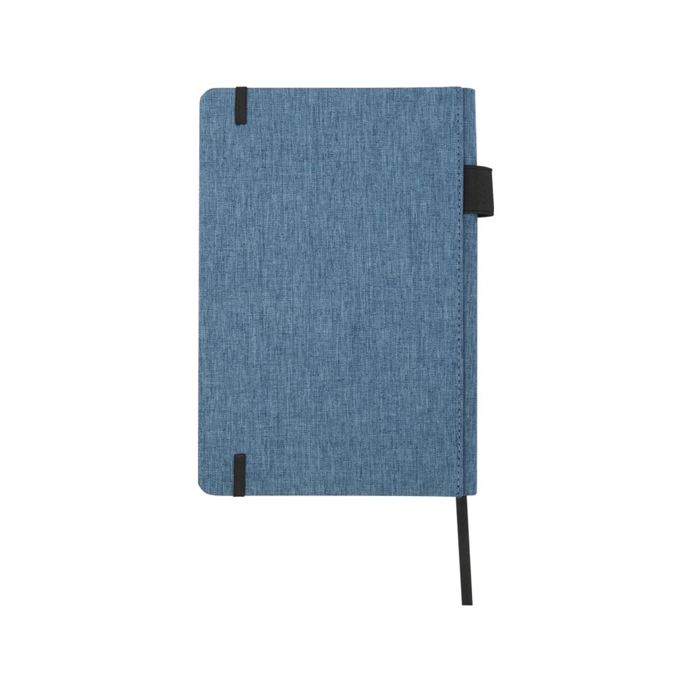 Блокнот формата А5 с отделкой из переработанного ПЭТ. Содержит 96 листов в линию плотностью 70 г/м², изготовленных из переработанной бумаги, с петлей для ручки и лентой-закладкой. В упаковке из картона. Recycled Plastic, Переработанная бумага. #?0:>2:0: FSC Recycled 100% P5.1 CU-COC-877277. FSC Recycled 100% P7.1 CU-COC-877277.