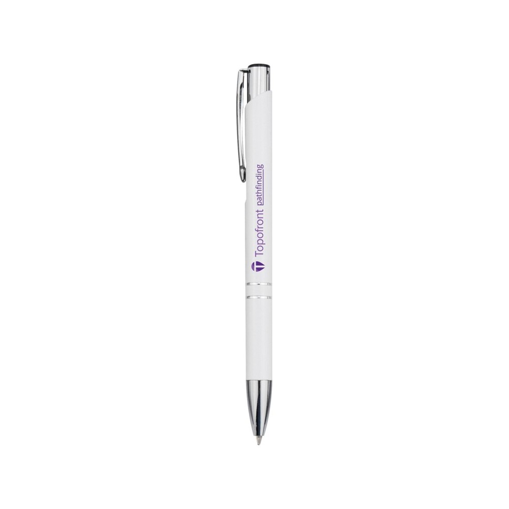 • Алюминиевая шариковая кнопочная ручка Moneta, черные чернила, белый