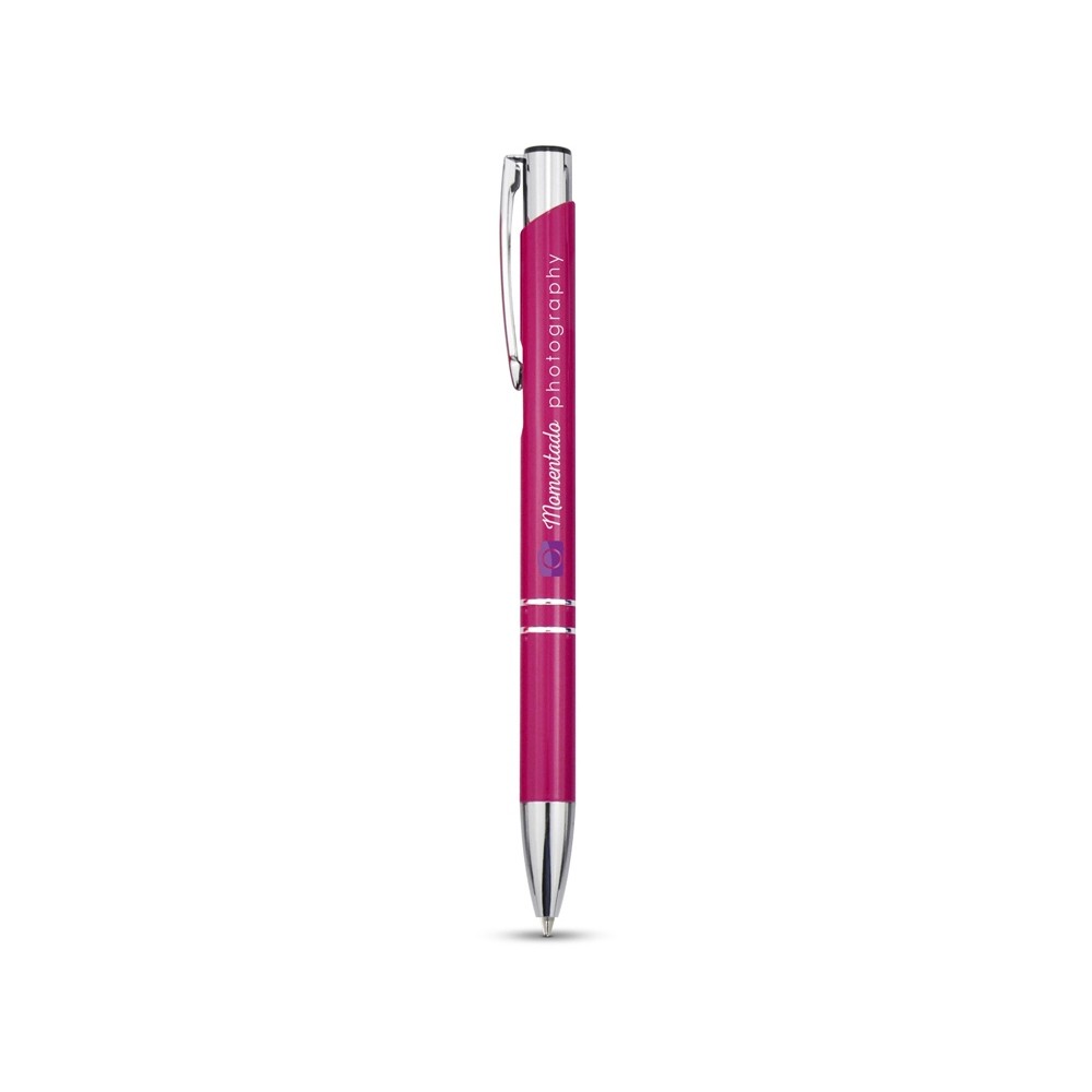 Алюминиевая шариковая кнопочная ручка Moneta, черные чернила, фуксия