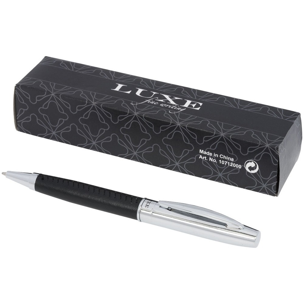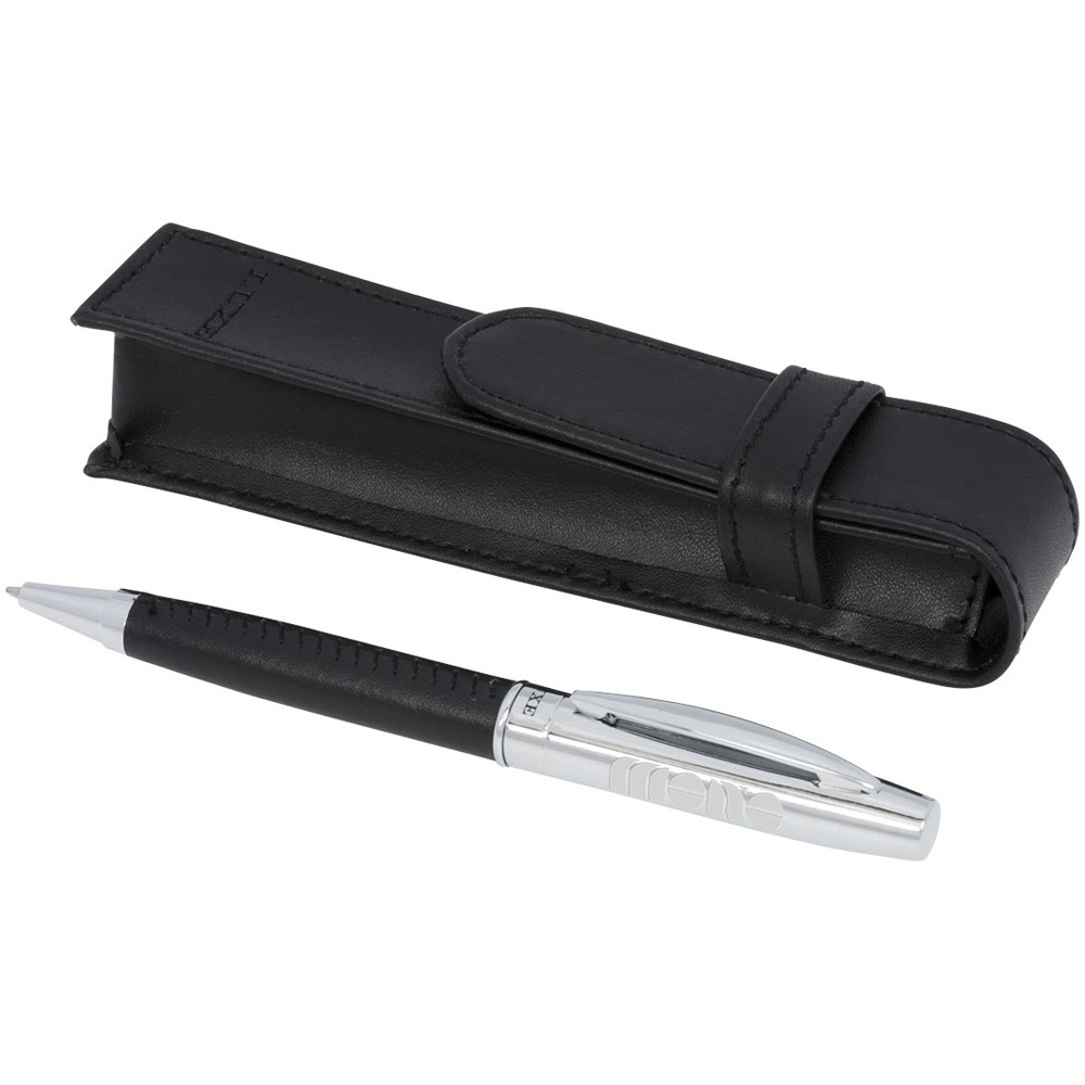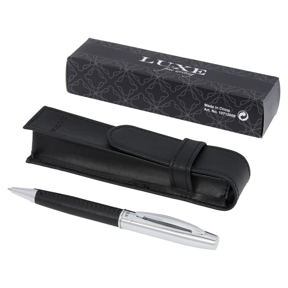 Подарочный набор «Scherzo». Эксклюзивная шариковая ручка с обтянутым кожаным материалом корпусом и чехлом из искусственной кожи, упакованная в подарочную коробку «LUXE». Металл и искусственная кожа.