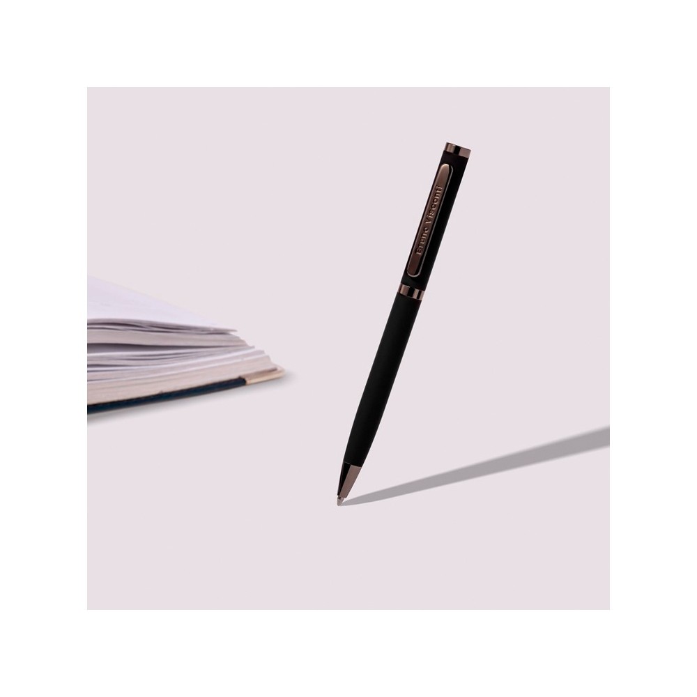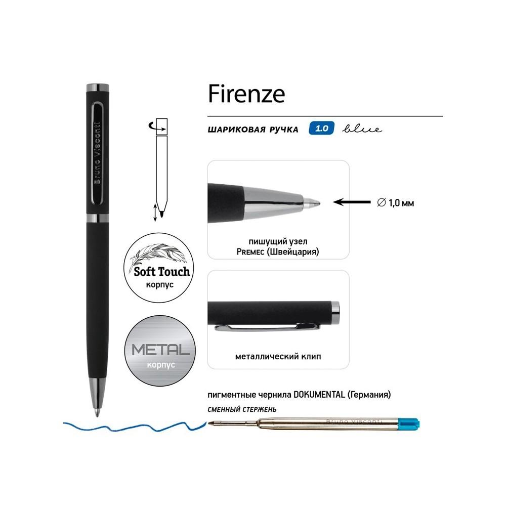Лаконичный дизайн, прочный металлический корпус, строгость формы подчеркнут статус владельца ручки. Удобство в эксплуатации и тактильно приятные ощущения подарит бархатистое покрытие Soft Touch.