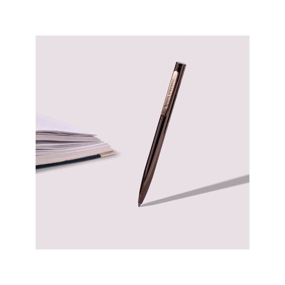 Лаконичный дизайн, строгость формы, прочный металлический корпус в цвет вороненой стали подчеркнут статус владельца ручки.
