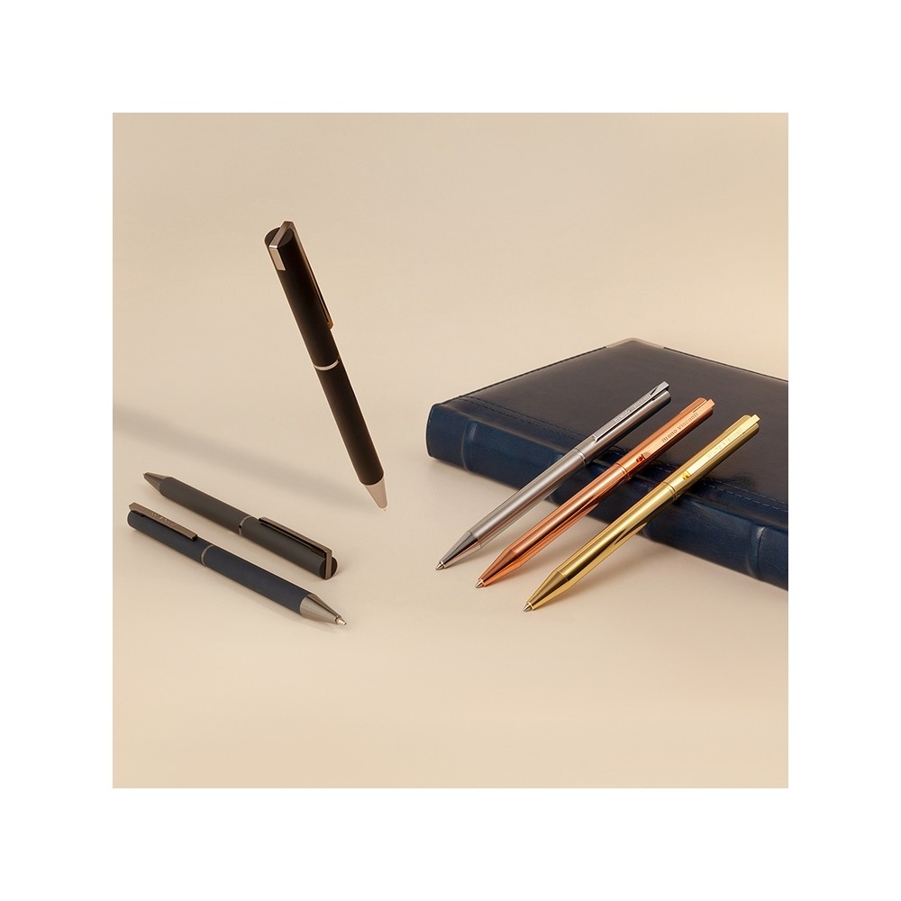 Шариковая ручка из коллекции «Bergamo» в металлическом корпусе. Ручка автоматическая с легким поворотным механизмом подачи стержня. Надежный пишущий узел d 0,7 мм (от швейцарского производителя Premec) гарантирует высокое качество также, как и пигментные чернила Dokumental (Германия). Благодаря им писать ручкой «Bergamo» от Bruno Visconti одно удовольствие – она мягко скользит по поверхности бумаги, оставляя ровную, четкую линию.