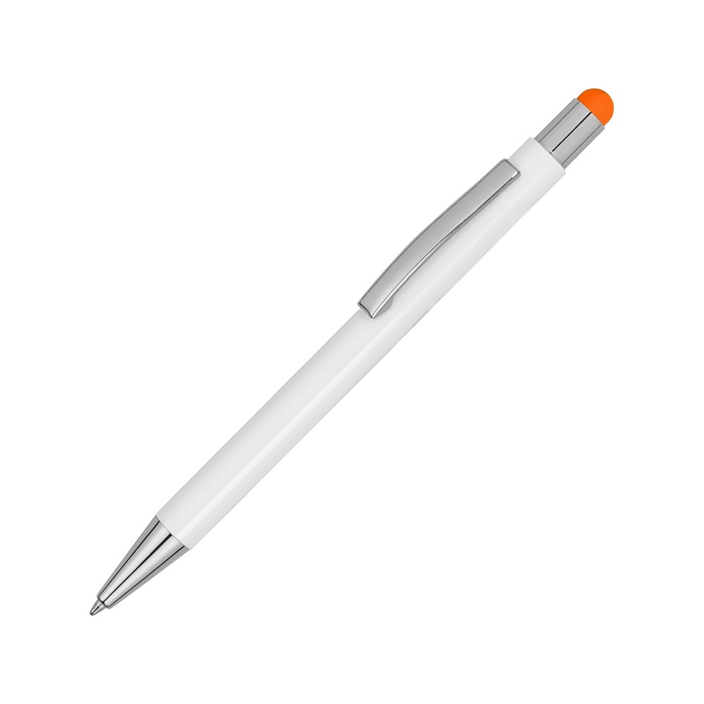 Ручка металлическая шариковая «Flowery» со стилусом и цветным зеркальным слоем, белый/оранжевый (Р)