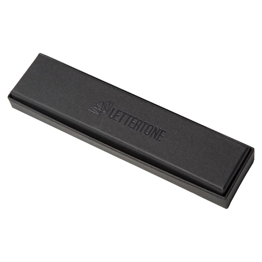 Поставляется в чёрной матовой коробочке с прозрачным логотипом «Lettertone» на дне.