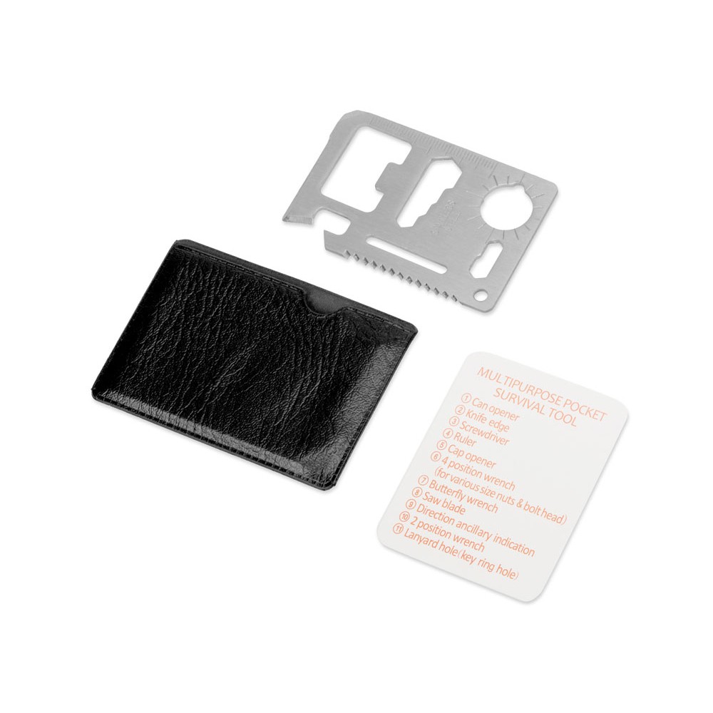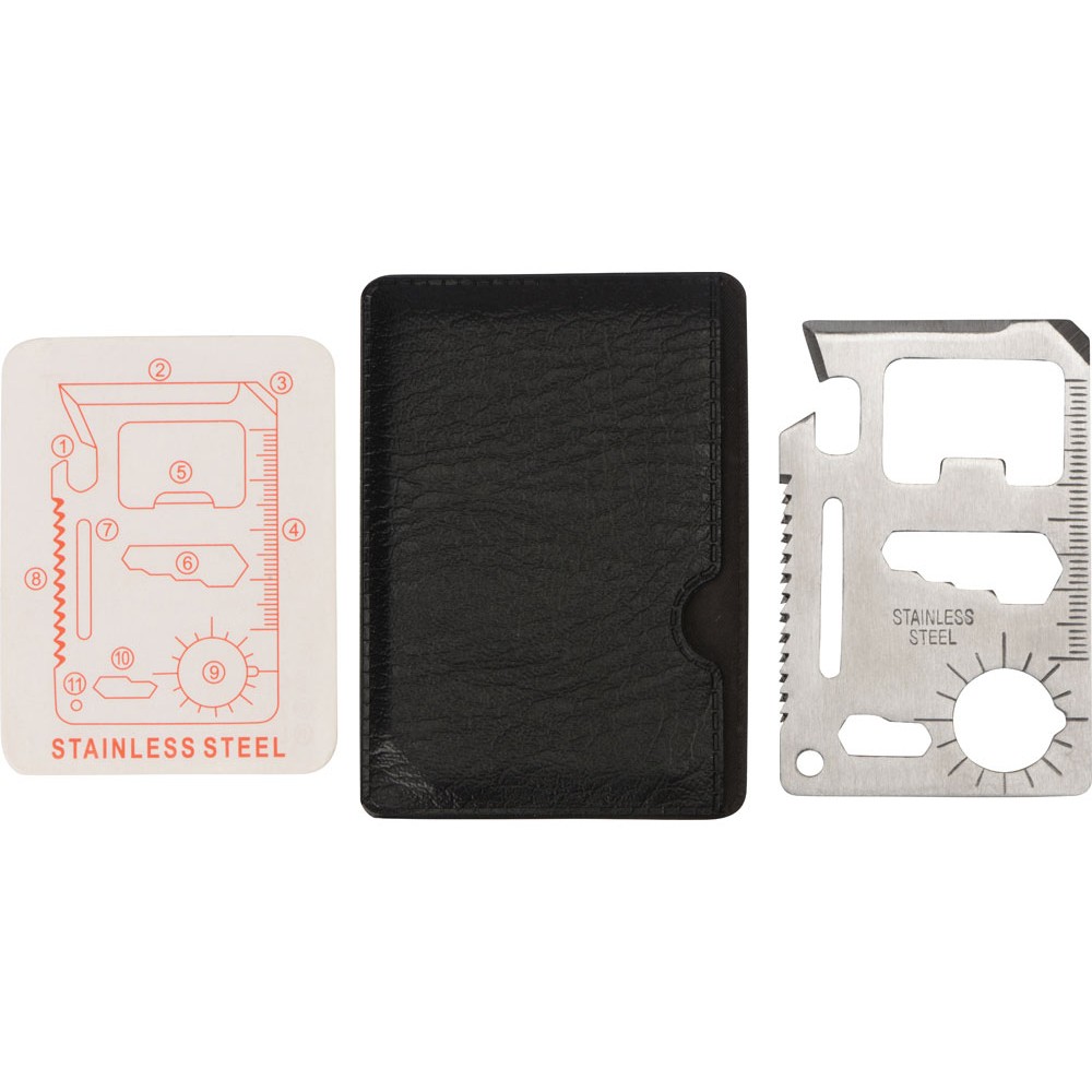 Мультиинструмент «Helper mini» в виде карты объединяет в себе 10 различных приспособлений: консервный нож, лезвие, плоскую отвертку, линейку, открывалку для бутылок, гаечный ключ на 4 различных размера головок болтов, ключ для барашковых гаек, пила, транспортир, гаечный ключ на 2 размера. Мультиинструмент выполнен из нержавеющей стали, что обеспечивает легкость, прочность и долгий срок эксплуатации «Helper mini».
