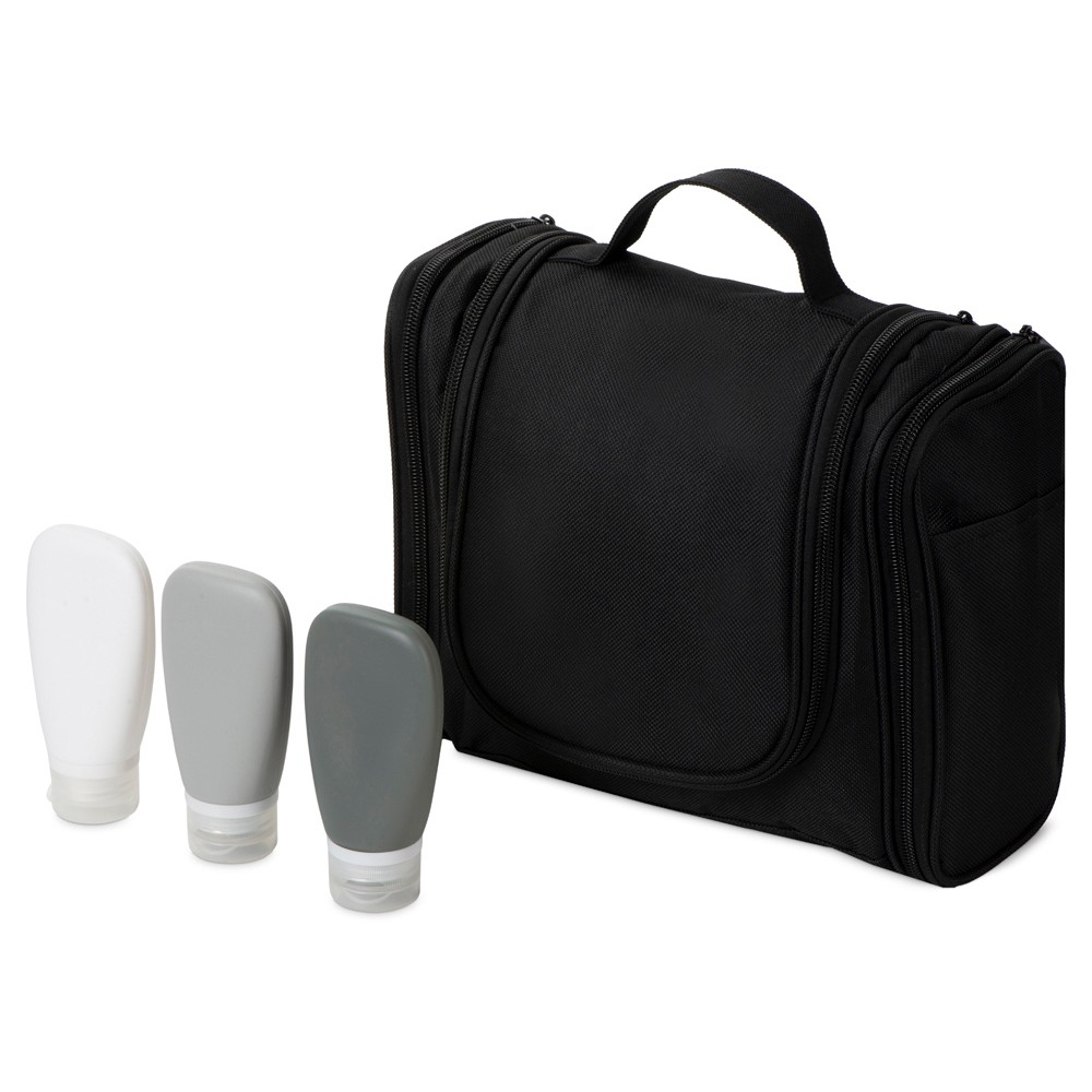 - силиконовые флакончики упакованы в полупрозрачную косметичку из EVA;