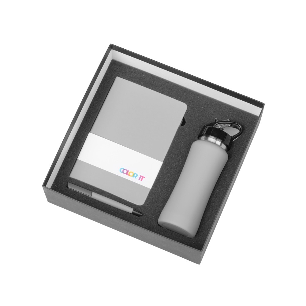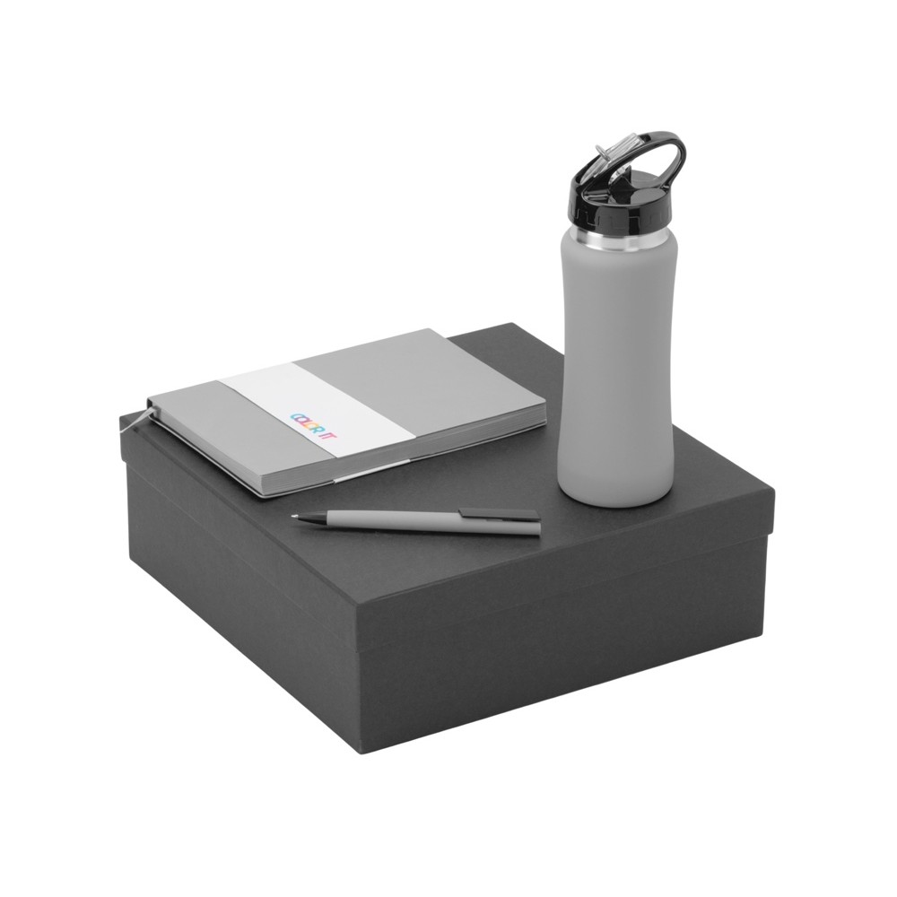 • Подарочный набор c блокнотом C1, ручкой и бутылкой, серый