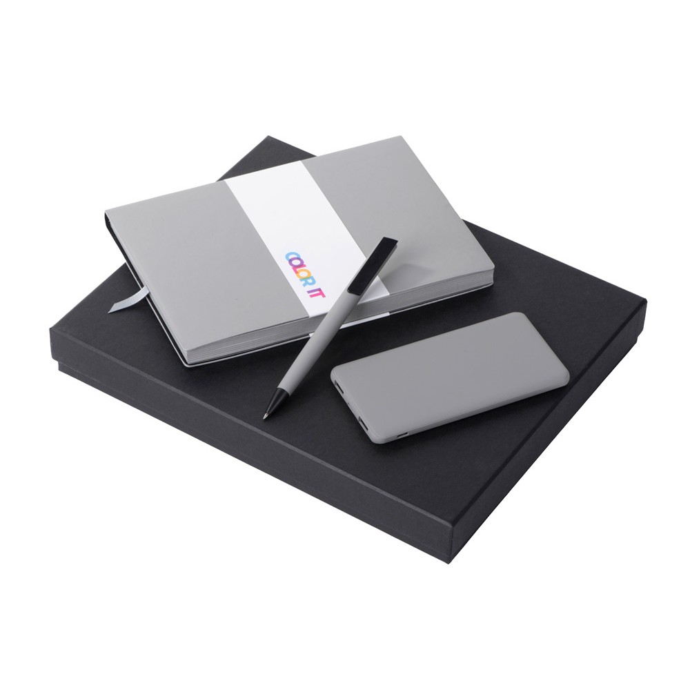 • Подарочный набор c блокнотом С1, ручкой и повербанком 5000 mAh, серый