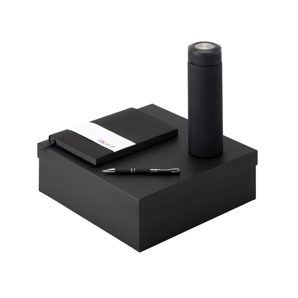 Подарочный набор с блокнотом С1, металлической ручкой и термосом, черный