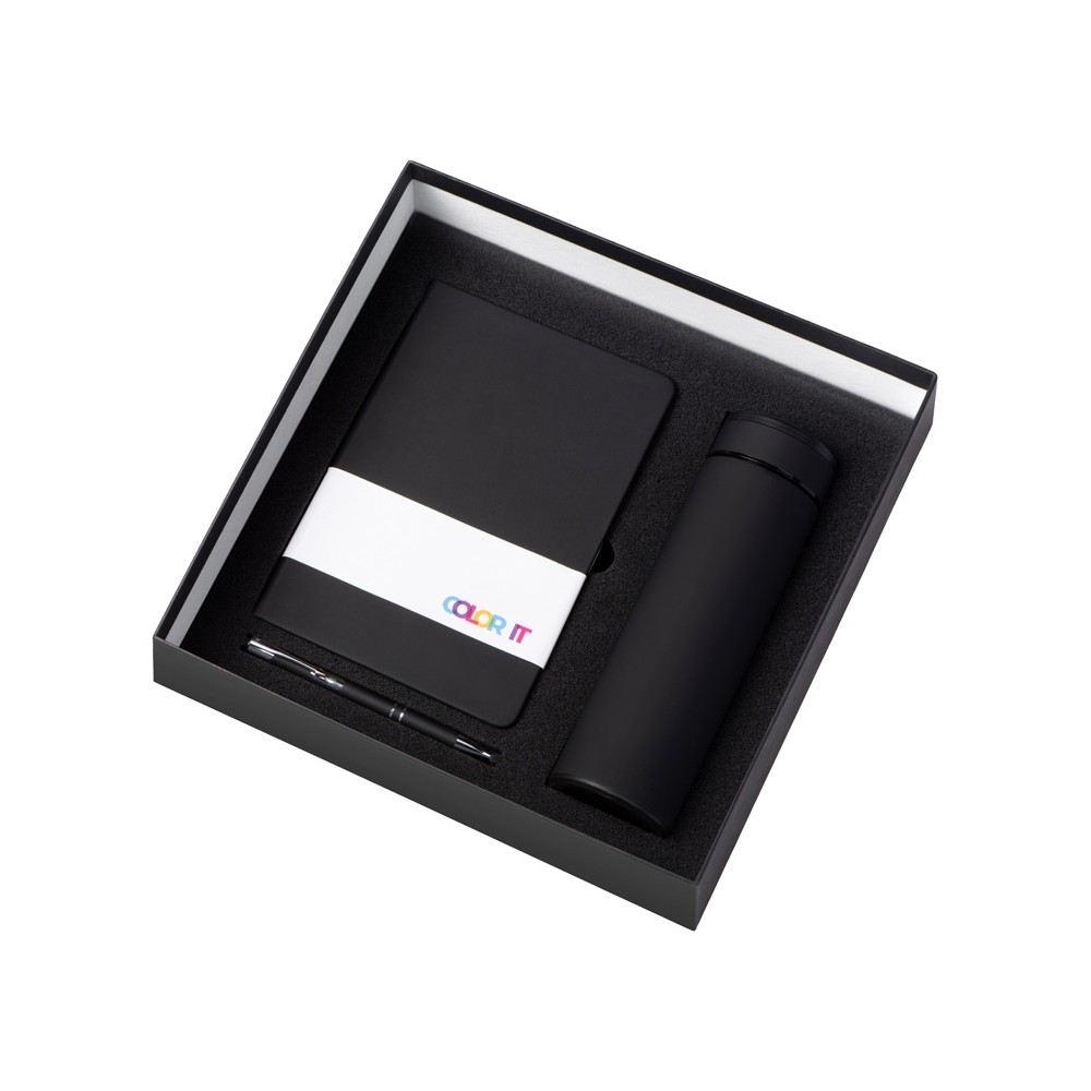 • Подарочный набор с блокнотом С1, металлической ручкой и термосом, черный
