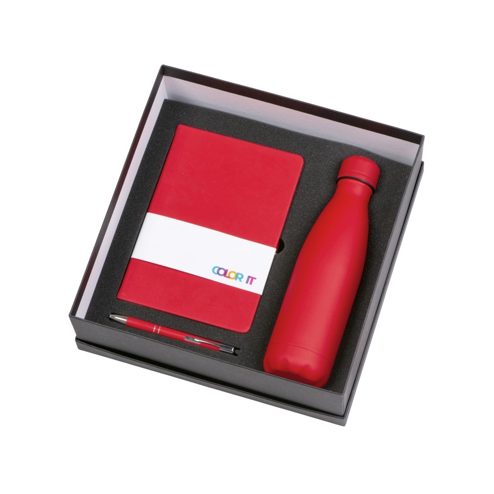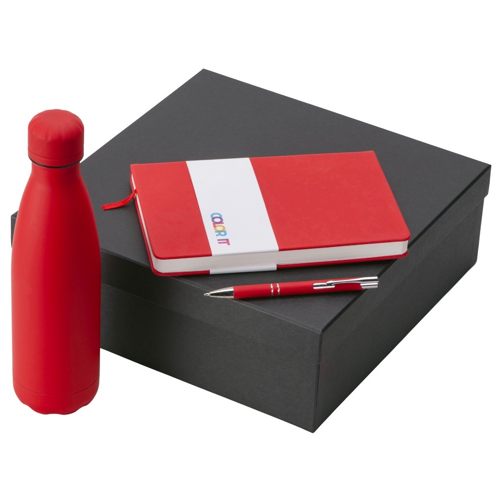 • Подарочный набор с блокнотом С2, металлической ручкой и термобутылкой, красный