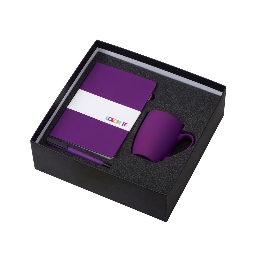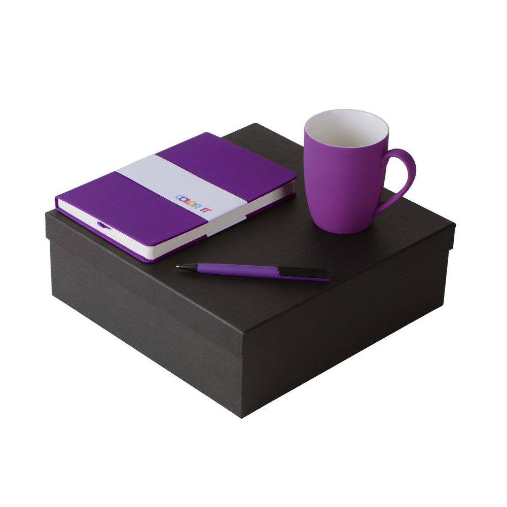 • Подарочный набор с блокнотом С2, пластиковой ручкой и кружкой, фиолетовый