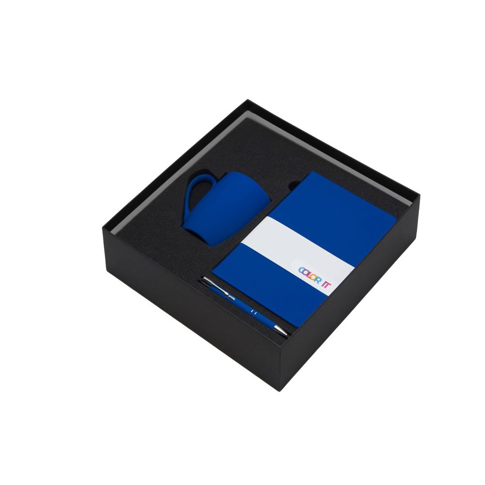 • Подарочный набор с блокнотом С3, металлической ручкой и кружкой, синий