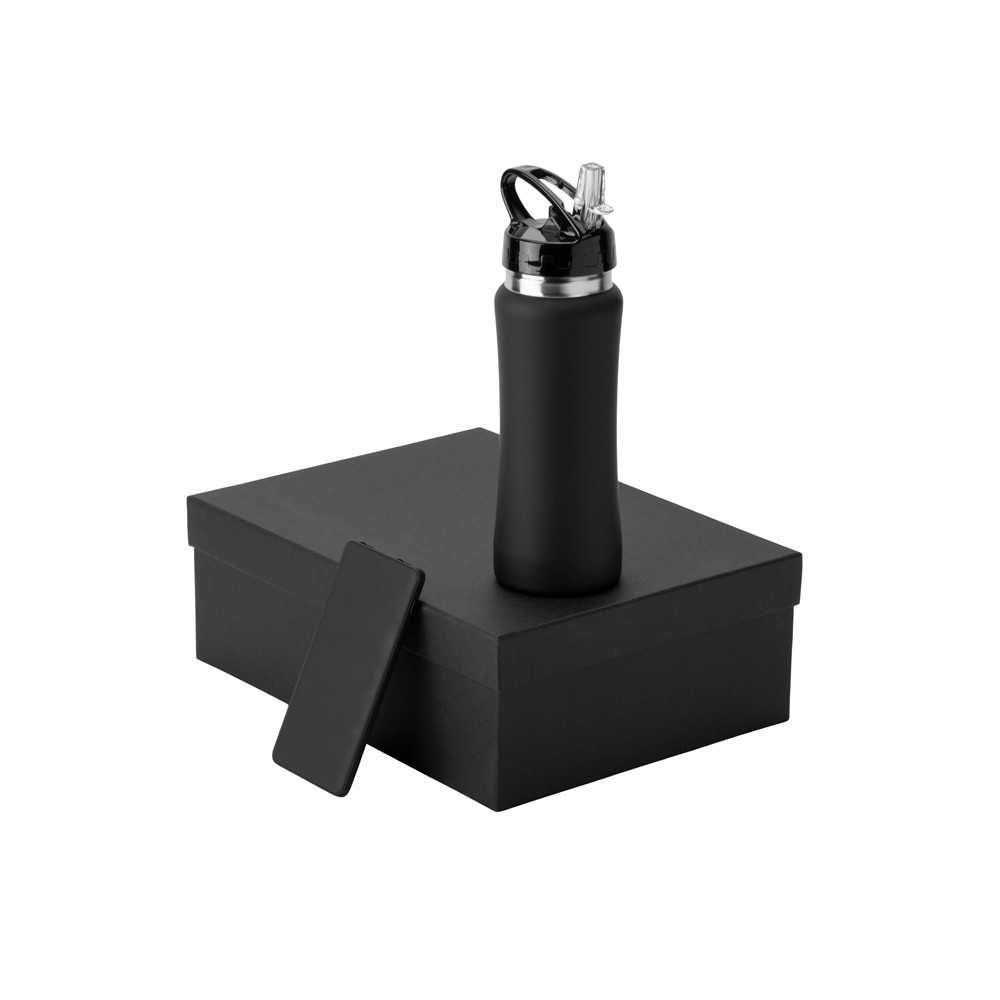 Подарочный набор с бутылкой для воды и повербанком С1, 5000 mAh, черный