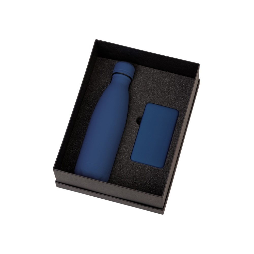 • Подарочный набор с термобутылкой и повербанком С1, 5000 mAh, темно-синий