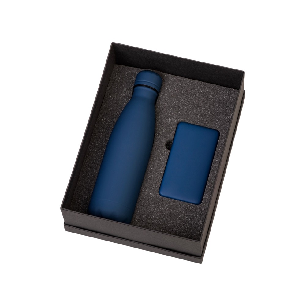 • Подарочный набор с термобутылкой и повербанком С2, темно-синий