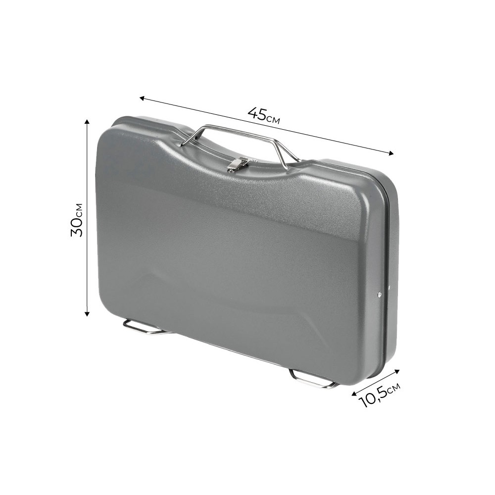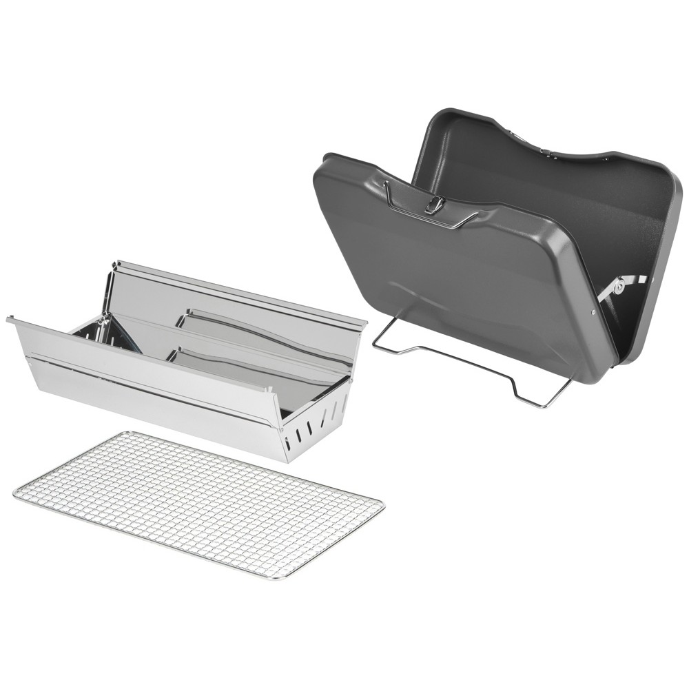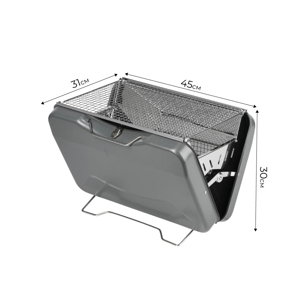 Портативный гриль встроен в компактный нержавеющий кейс, что позволяет переносить и использовать его на природе. Он не занимает много места, прост в использовании, легко раскладывается. В комплекте к грилю идет одна решетка гриль. С ним отдых на природе может быть не только приятным, но и спонтанным — просто положите кейс в багажник, чтобы всегда быть готовым к приключениям!