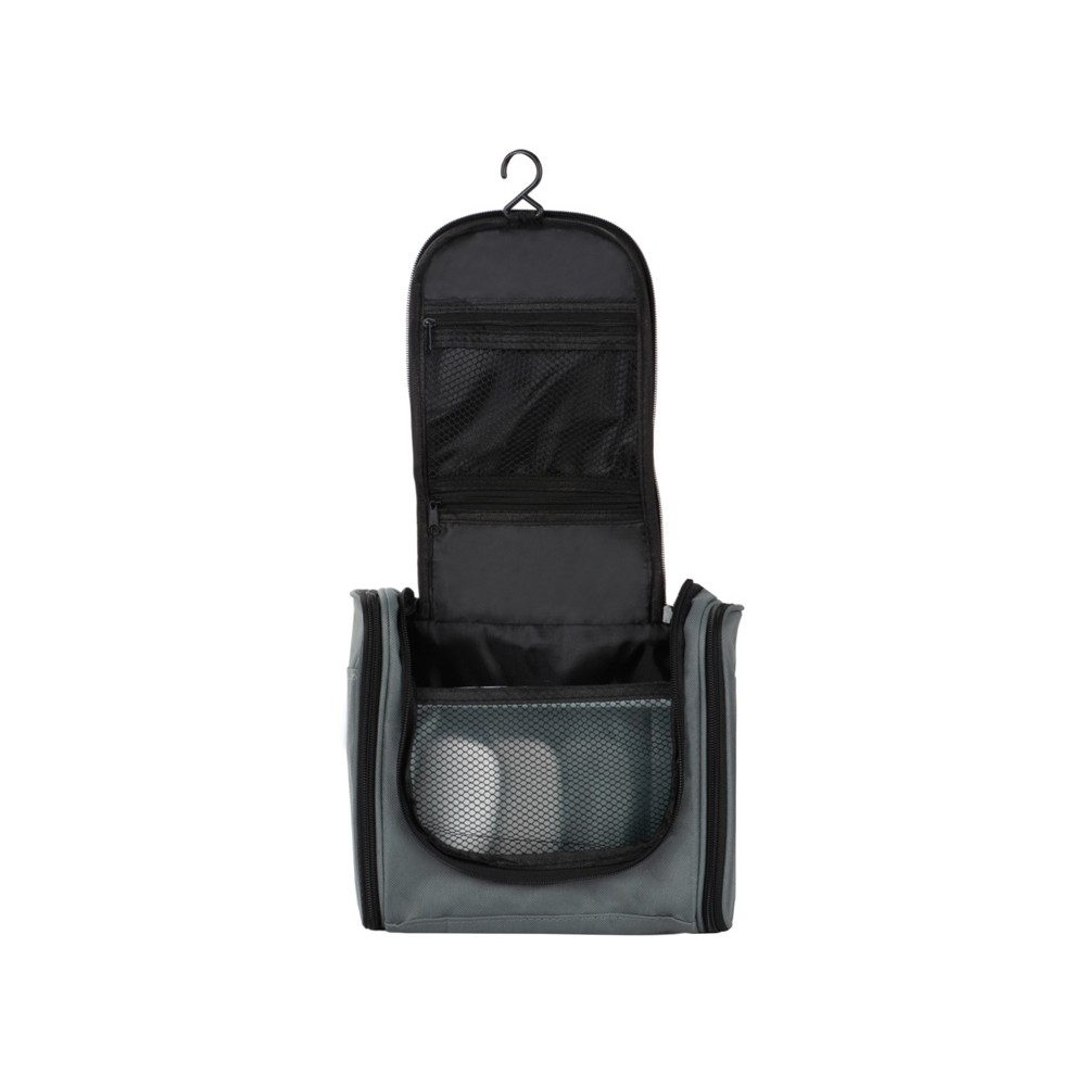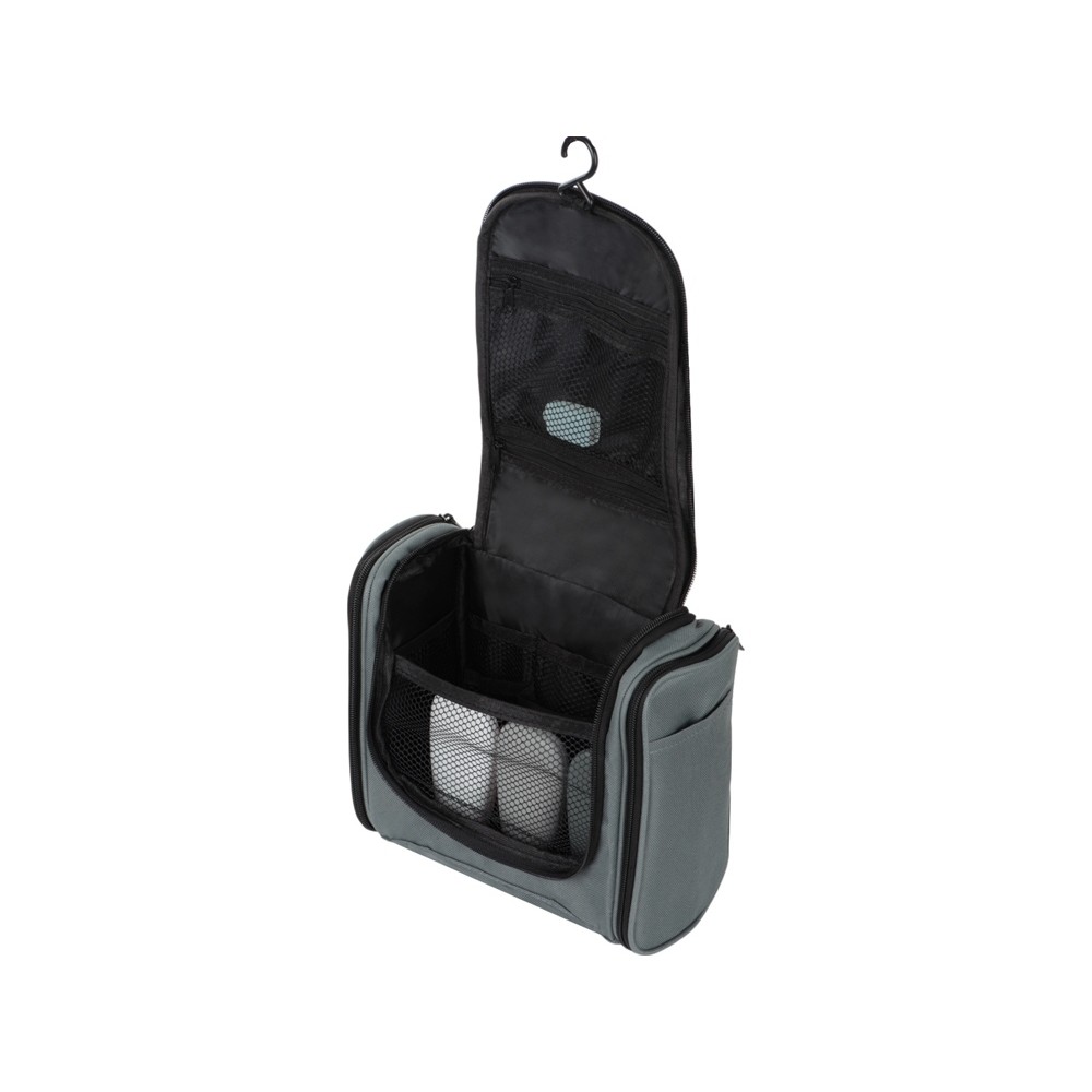 Несессер для путешествий. Эргономичный и вместительный, имеет внутренние и внешние карманы и большое отделение внутри. Оснащён ручкой для переноски и крючком для подвешивания. Нейтральный лаконичный дизайн позволяет преподнести несессер как мужчине, так и женщине;