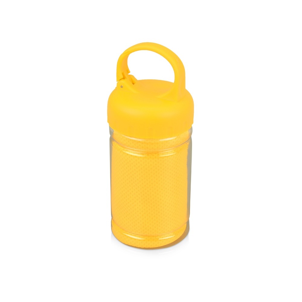 Материал товара бутылка- пластик, полотенце- полиэстер