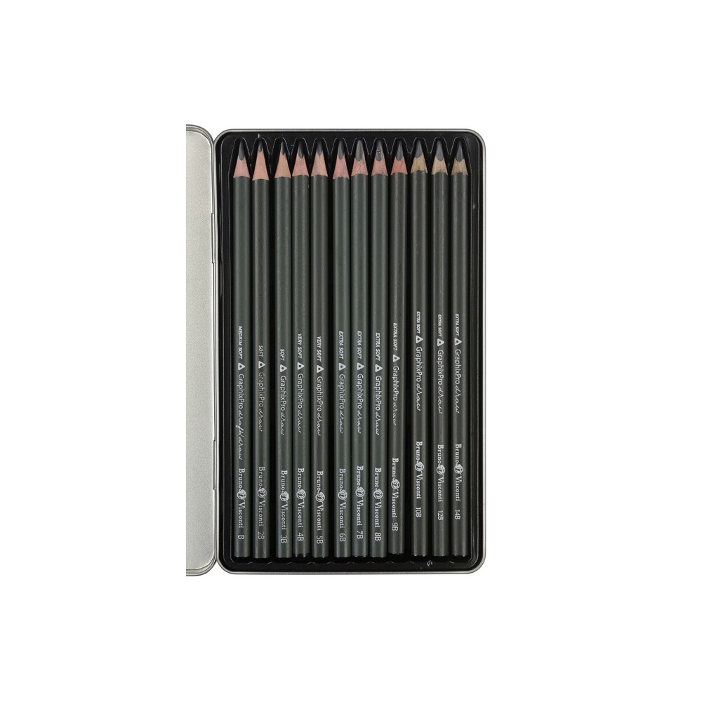 | Комплектность | 12 карандашей разной твердости (B, 2B, 3B, 4B, 5B, 6B, 7B, 8B, 9B, 10B, 12B, 14B), металлическая коробка |
