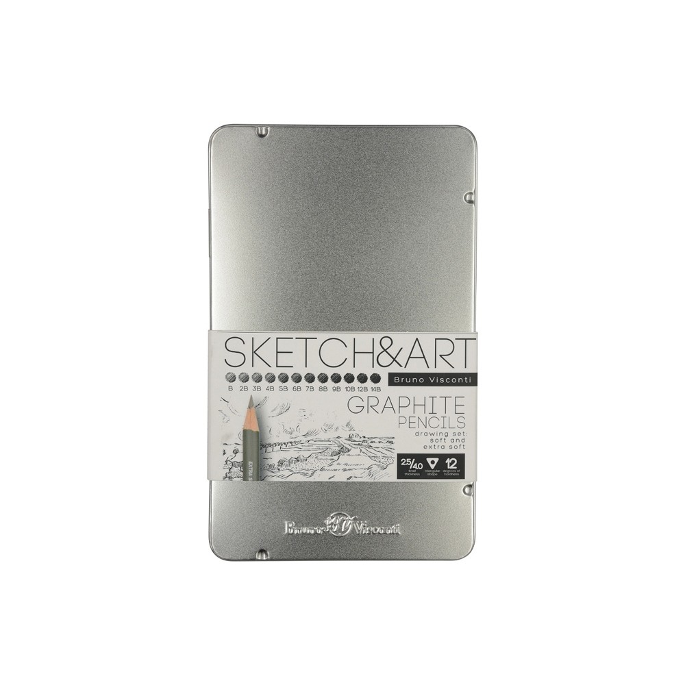 Набор чернографитовых карандашей "Sketch & Art" ,12 шт. b-14b, металлическая коробка с ложементом