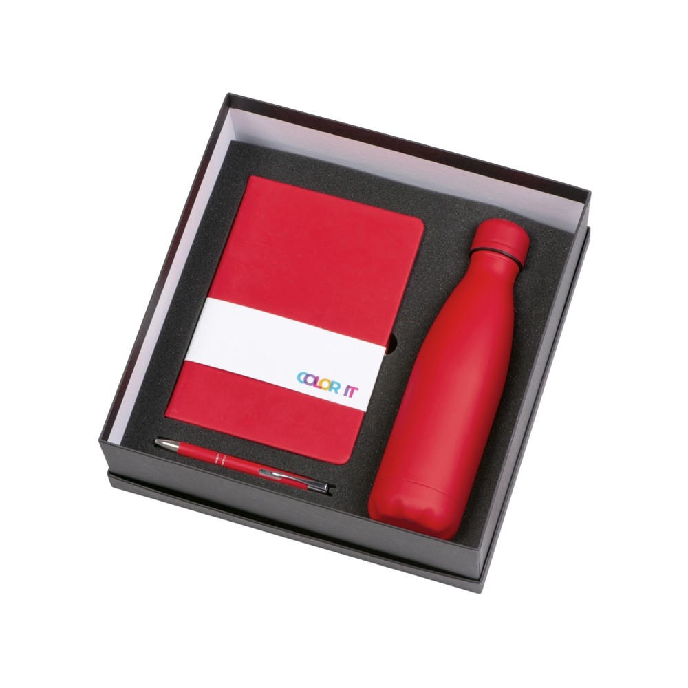 • Подарочный набор с блокнотом С1, металлической ручкой и термобутылкой, красный