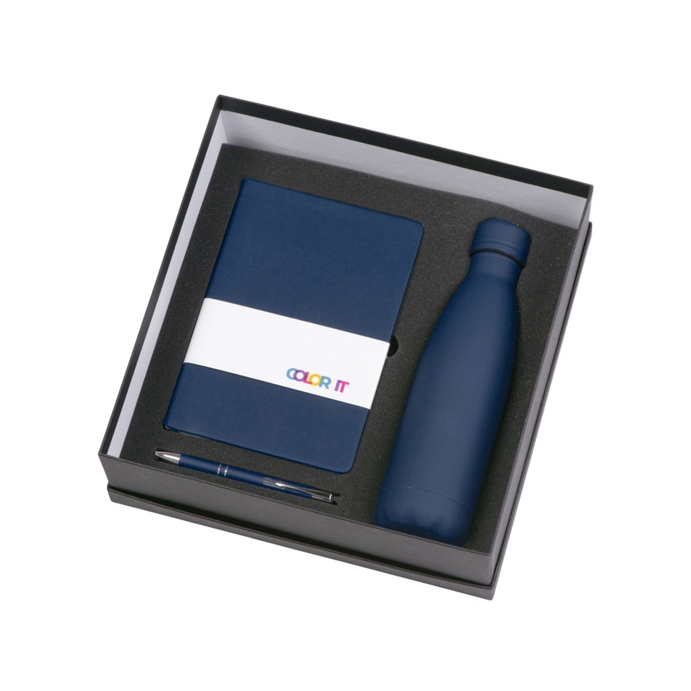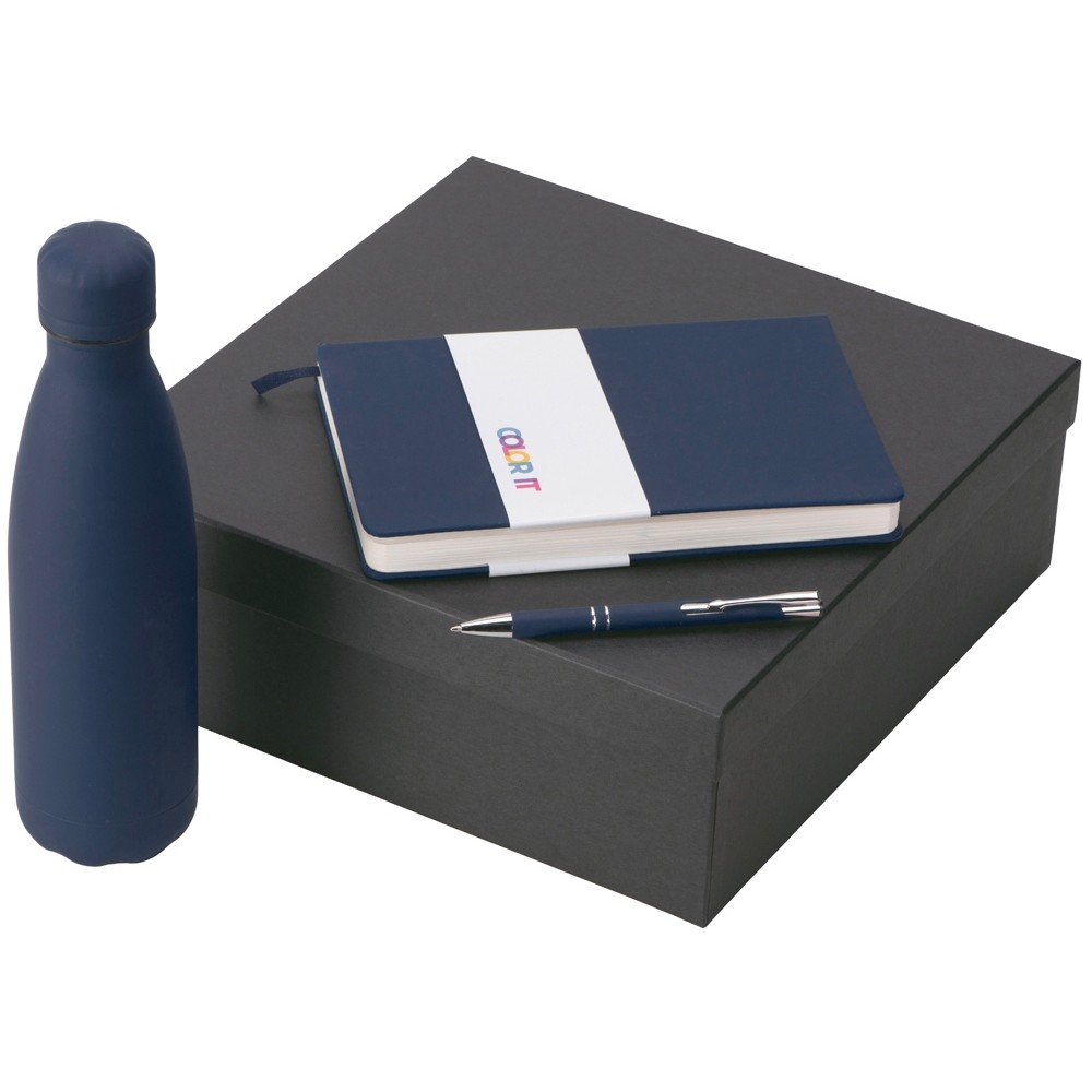 • Подарочный набор с блокнотом С2, металлической ручкой и термобутылкой, темно-синий