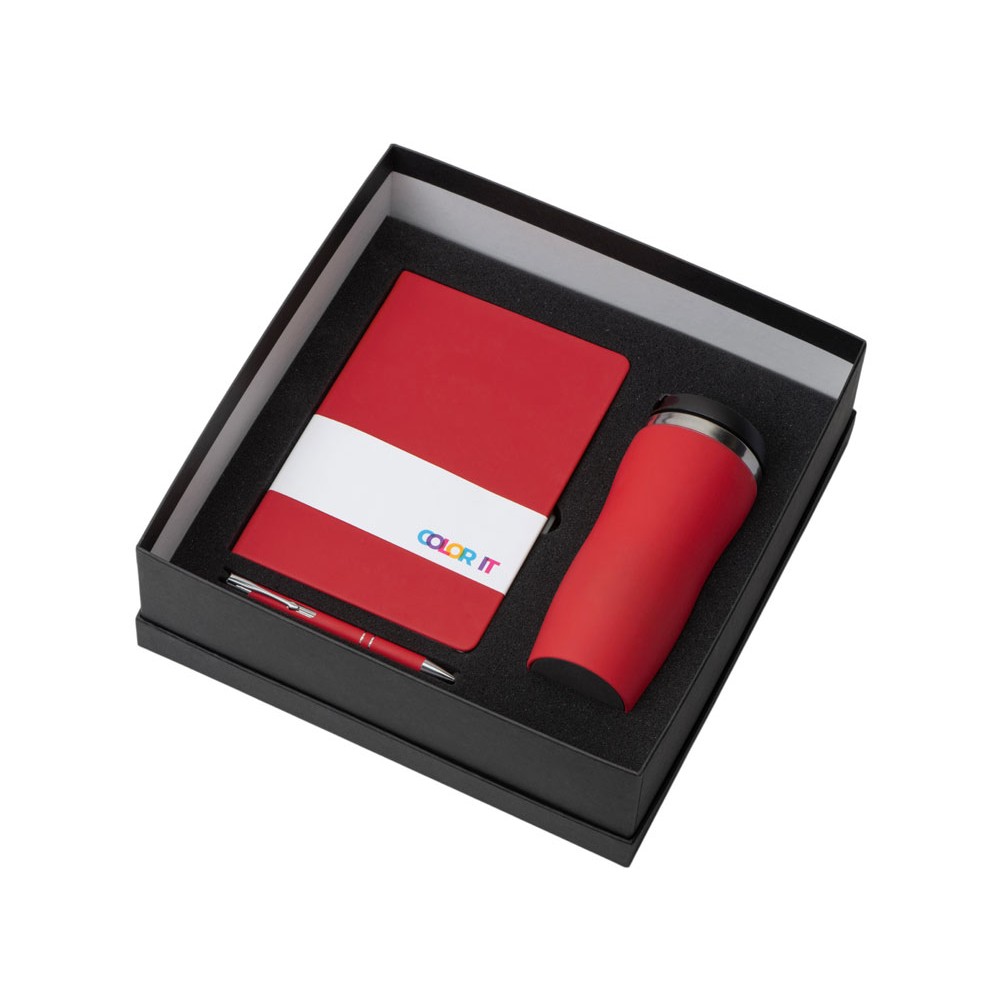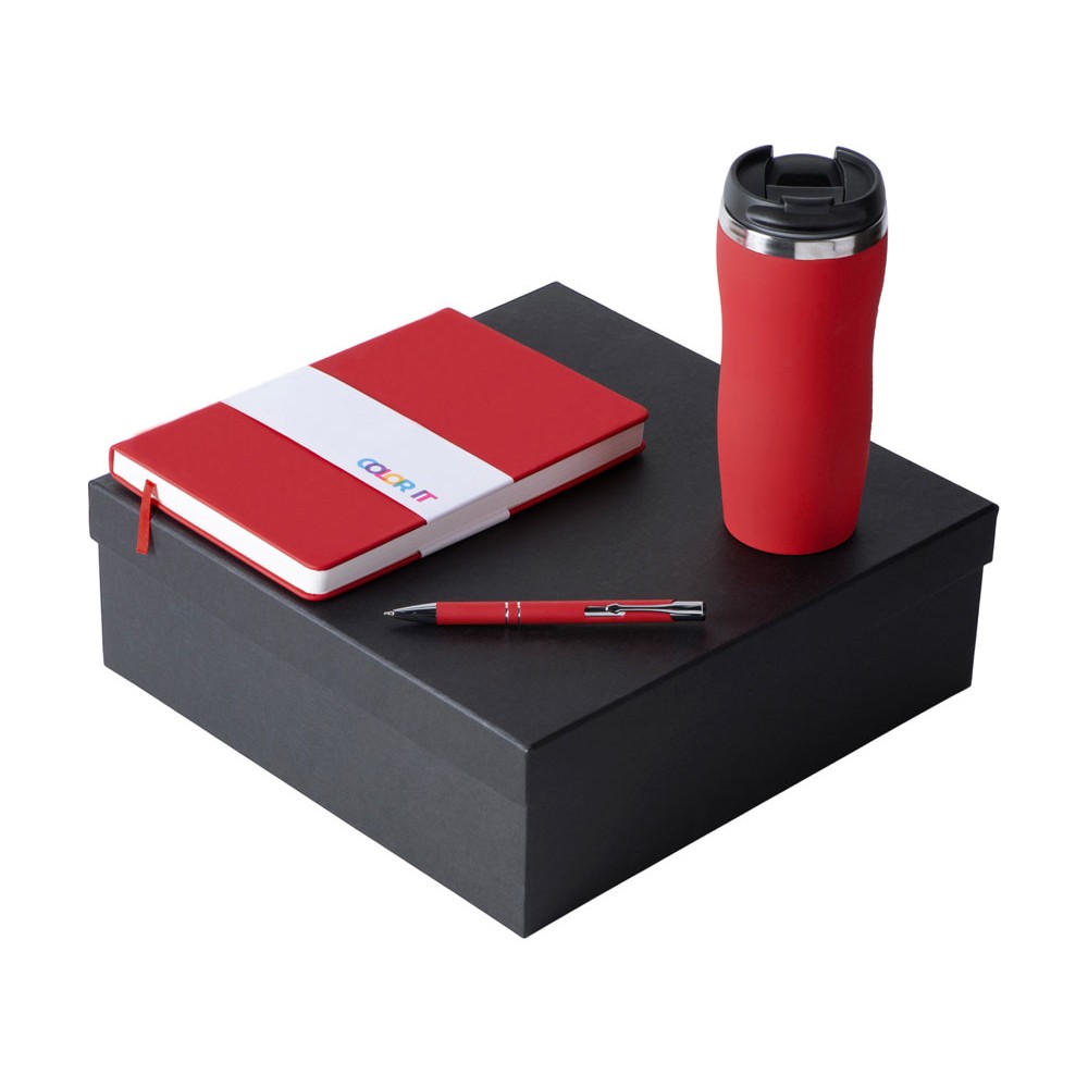 | Материал товара | блокнот - искусственная кожа с покрытием софт-тач, ручка - алюминий с покрытием софт-тач, термокружка - нержавеющая cталь с покрытием софт-тач, коробка - картон |