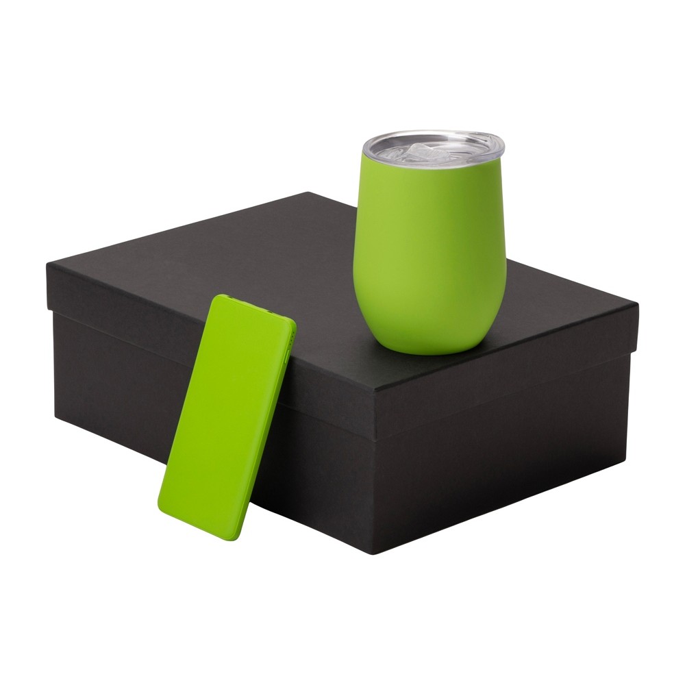 Подарочный набор с термокружкой и повербанком С2, 10000 mAh, зеленое яблоко