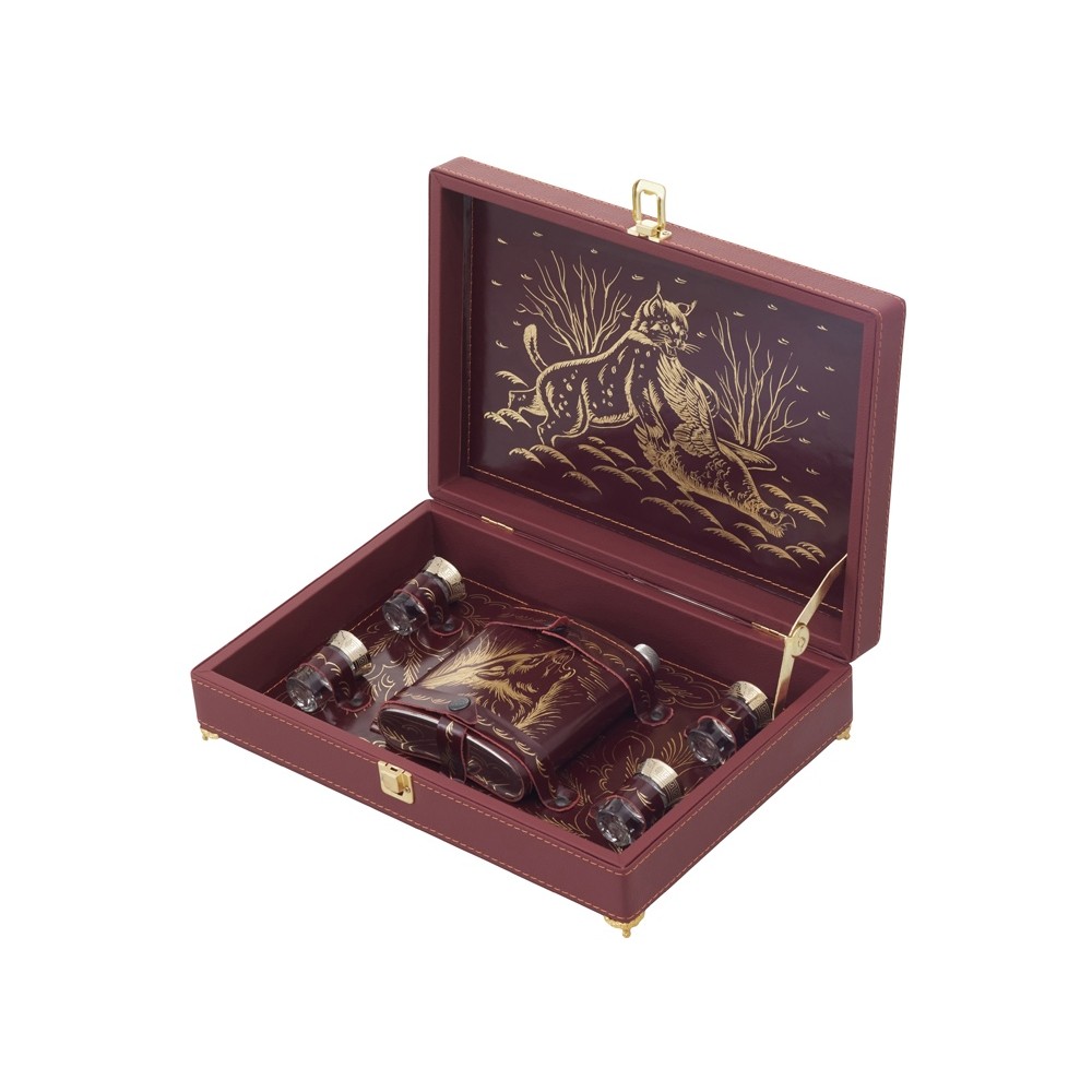 Вес2271 Комплектностькейс, стопка 15мл- 4шт (d3,5 х 5,3 см), фляга- 500мл (15,5 х 12,5 х 3,5 см ) Материал товарасплит-кожа/натуральная кожа, нержавеющая сталь, стекло