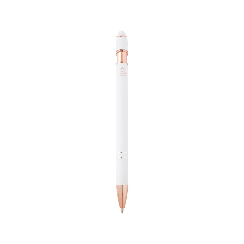 Шариковая ручка Nanna с покрытием из розового золота имеет корпус из переработанного алюминия и сенсорный стилус из силикона. Переработанный алюминий уменьшает количество отходов на свалках и помогает сохранять природные ресурсы для сокращения выбросов парниковых газов. Цвет чернил: черный. Длина непрерывной линии: 800 метров. Размер пера: 1,0 мм. Recycled Aluminium.