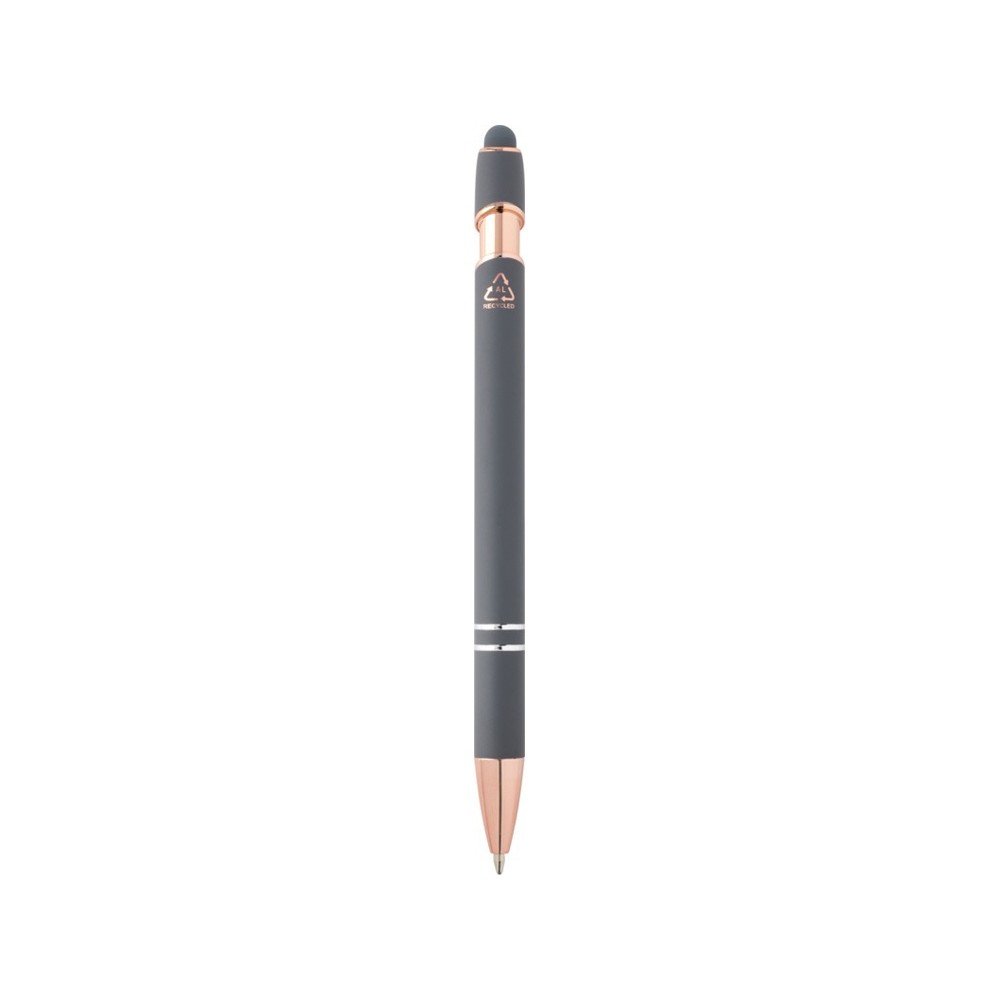 Шариковая ручка Nanna с покрытием из розового золота имеет корпус из переработанного алюминия и сенсорный стилус из силикона. Переработанный алюминий уменьшает количество отходов на свалках и помогает сохранять природные ресурсы для сокращения выбросов парниковых газов. Цвет чернил: черный. Длина непрерывной линии: 800 метров. Размер пера: 1,0 мм. Recycled Aluminium.