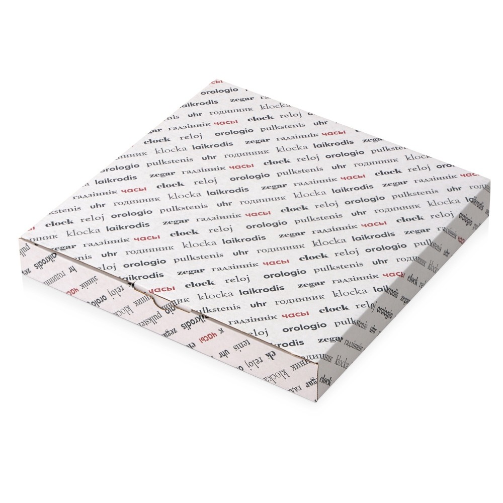 Часы предназначены для вставки циферблата (диаметром 205 мм) с печатью по индивидуальному дизайну. Часы поставляются в разобранном виде. В состав комплекта входит: корпус с механизмом, крышка, стрелки и коробка. Часовая и минутная стрелки - черного цвета, секундная - красного цвета.