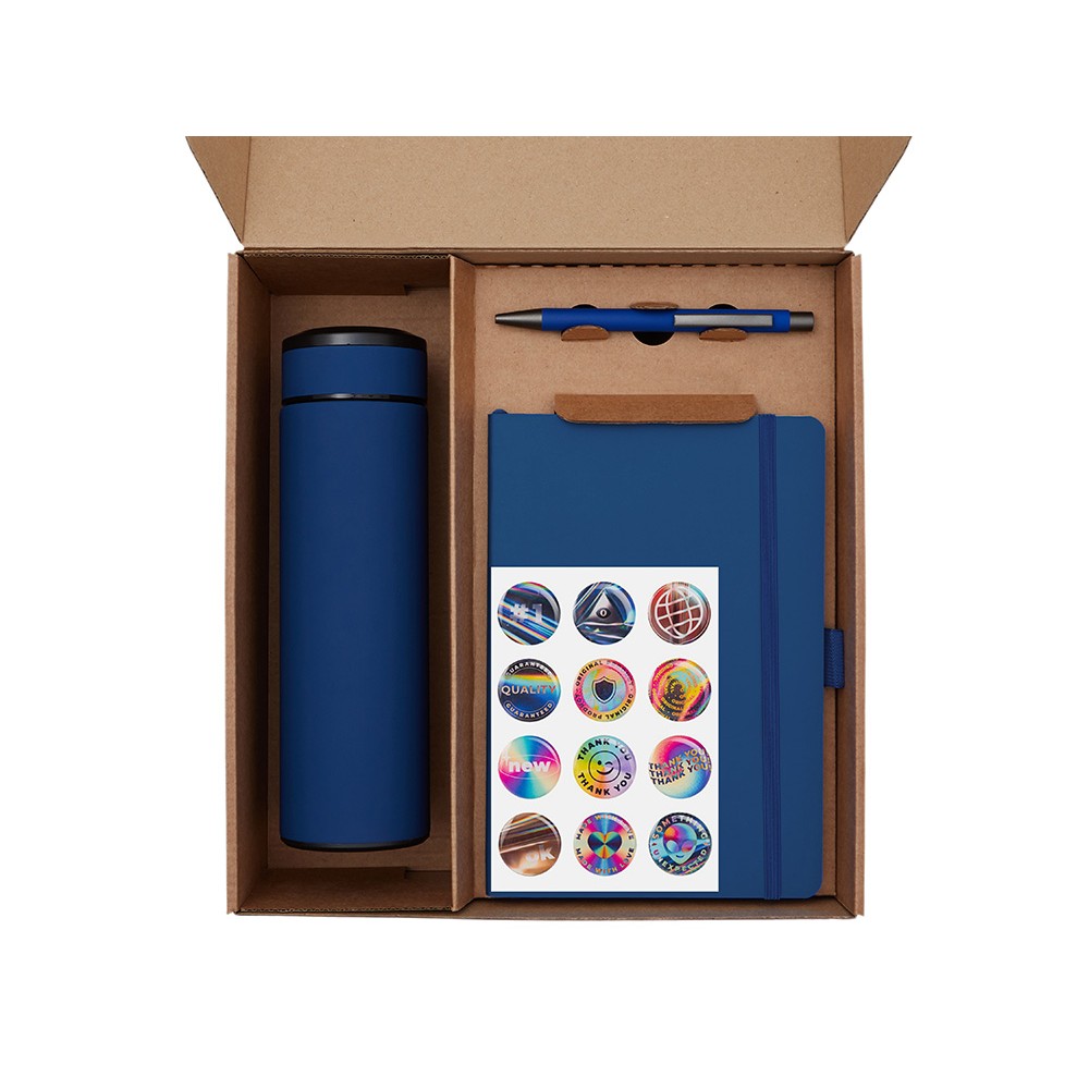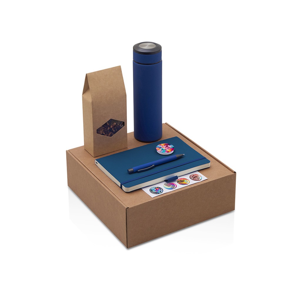 • Подарочный набор с термосом, блокнотом, ручкой и чаем, синий