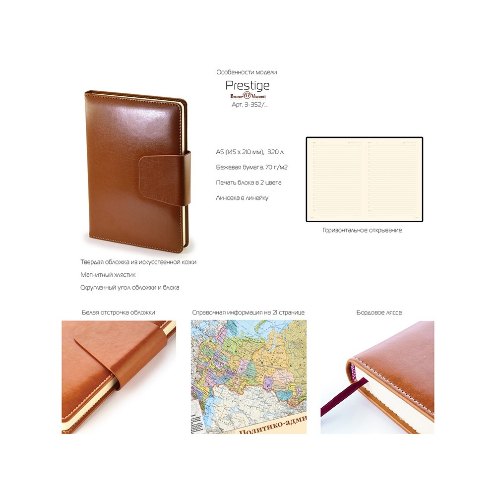 На складе Код товара: 3-352.06 Ежедневник А5 недатированный «Prestige», коричневый