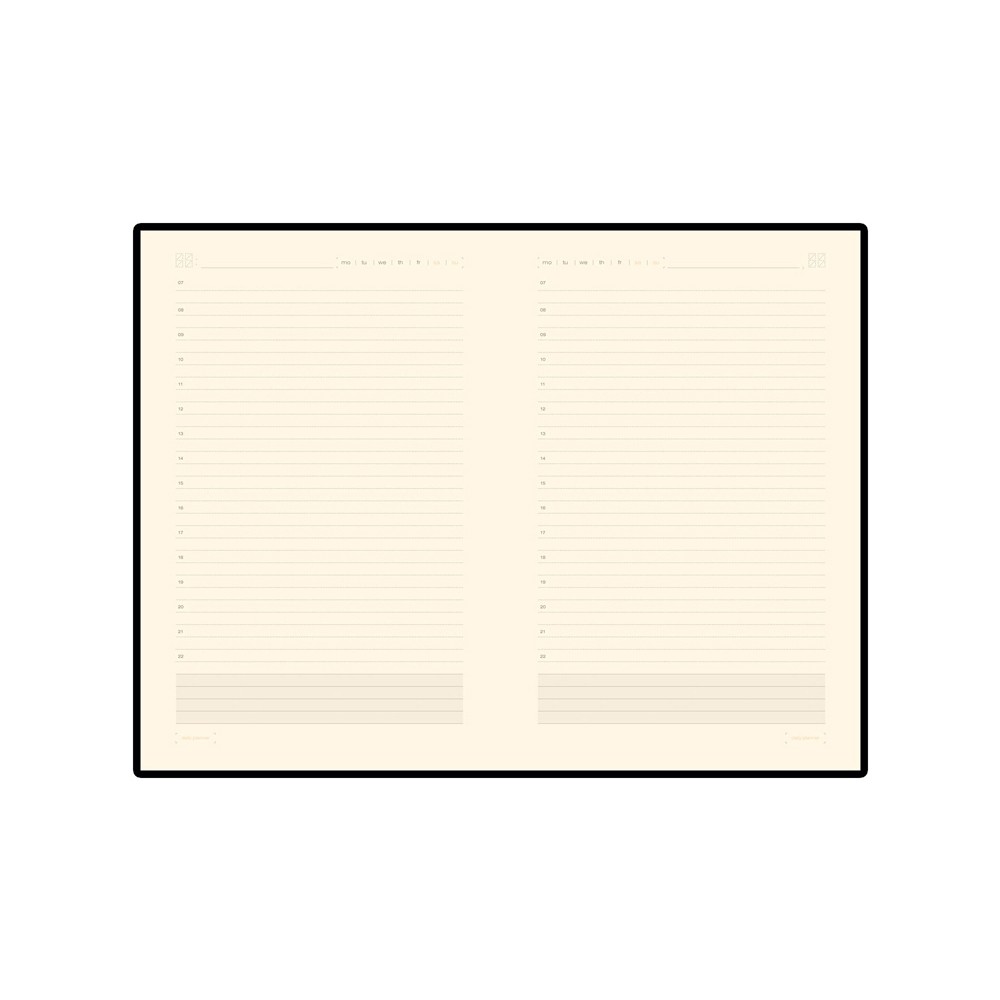 В ежедневнике «Zenith» есть полезная справочная информация, а также 272 страницы для записи идей, мыслей и составления рабочих планов. Есть закладка - тесьма из шелка, она интегрирована в обложку и может использоваться как хлястик. Для изготовления страниц используется качественный бежевый офсет повышенной плотности (70 г/кв м), которая производится в Японии и подходит для всех видов чернил. На последнем развороте обложки закреплен плотный черный конверт для визитных карточек.