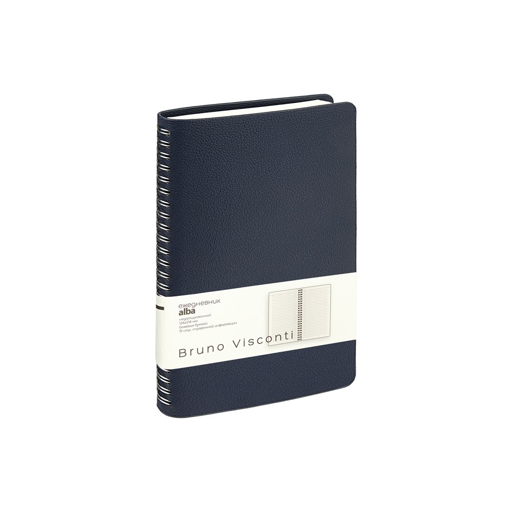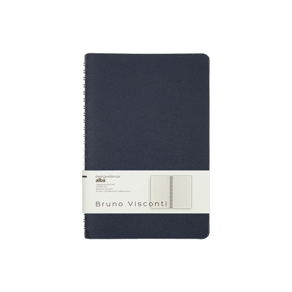 Недатированный ежедневник «Alba» ТМ Bruno Visconti формата А5 сочетает в себе два тренда, набирающих популярность среди современных деловых людей: полускрытый гребень, позволяющий переворачивать листы на 360 градусов, и мягкая гибкая обложка из искусственной кожи высокого качества исполнения.