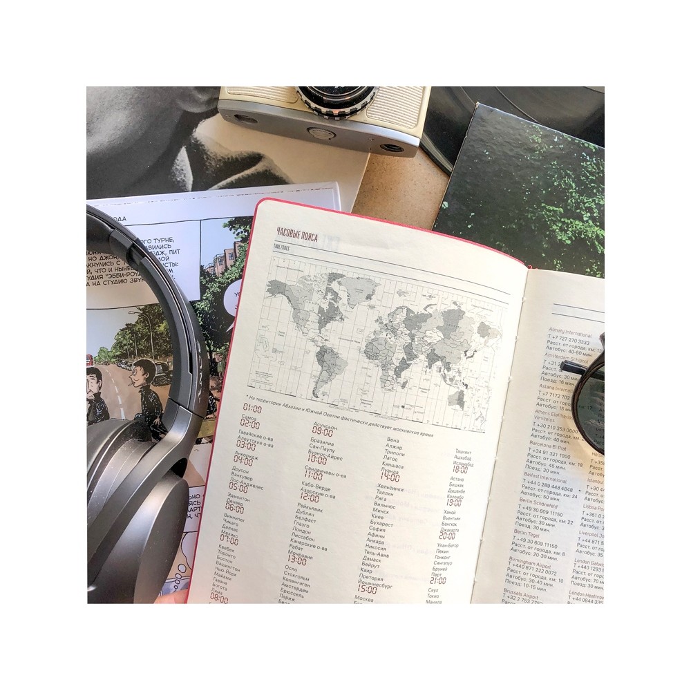 Внутри есть страница для личных данных, а также блок справочной информации (часовые пояса, аэропорты, телефонные коды, размеры одежды, автомобильные коды, римские цифры, расход калорий, формат бумаги, единицы измерения, штрихкоды, распад алкоголя в крови, города миллионники РФ и СНГ, национальные праздники, термины международной торговли, температура, скорость, давление, буквенные коды стран, энергетическая ценность продуктов, страны мира).